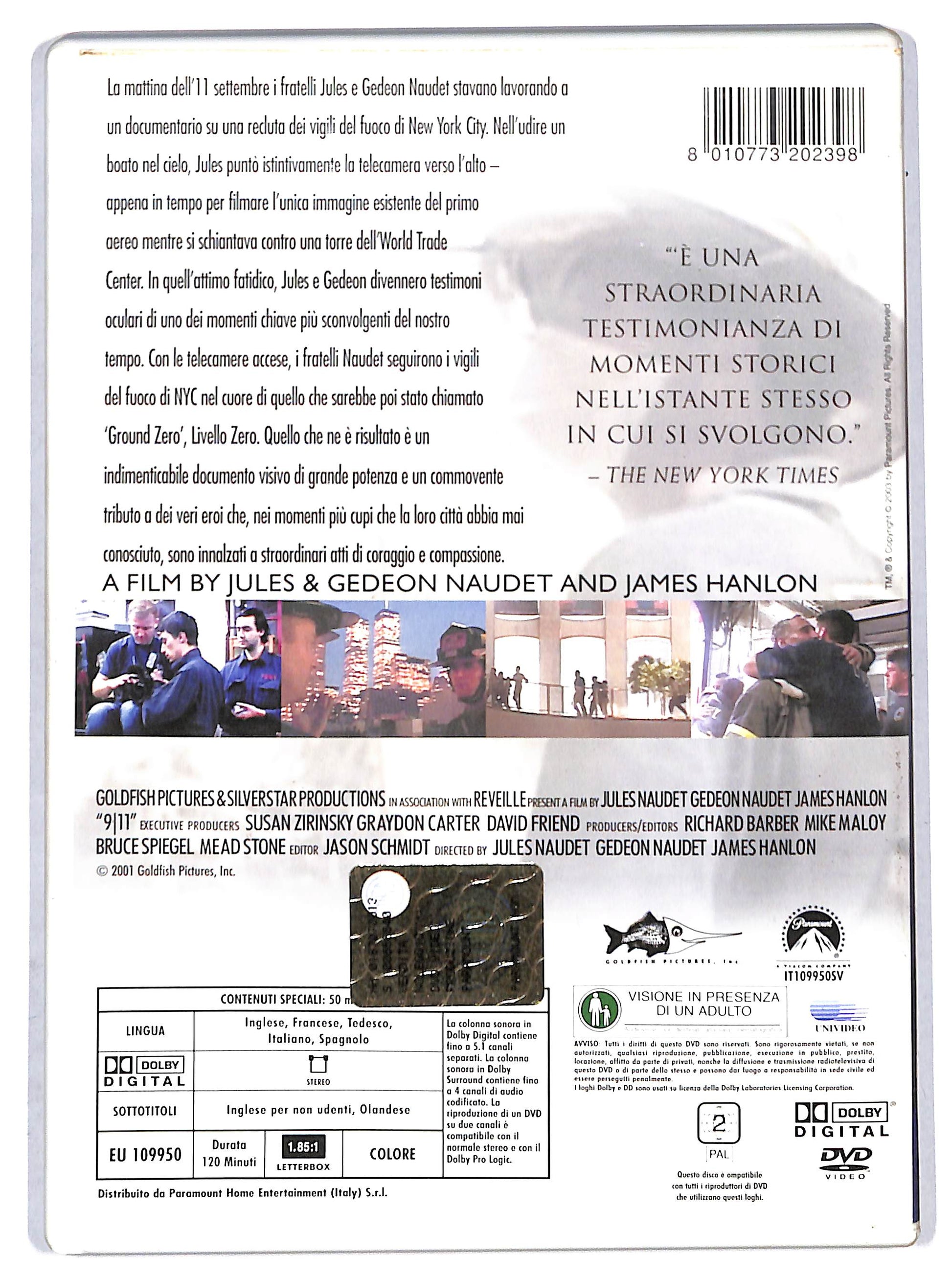 La mattina dell' 11 settembre i fratello Jules e Gedeon Naudet stavano lavorando a un documentario su una recluta dei vigili del fuoco di New York City. Nell'udire un boato nel cielo, Jules punto istintivamente la telecamera verso l'alto - appena in tempo per filmare l'unica immagine esistente del primo aereo mentre si schiantava contro una torre del World Trade Center. In quell' attimo faditico, Jules e Gedeon divennero testimoni oculari di uno dei momenti chiave piu sconvolgenti del nostro tempo. Con le telecamere accese, i fratelli Naudet seguirono i vigili del fuoco di NYC nel cuore di quello che sarebbe poi stato chiamato 'Ground Zero', Livello Zero. Quello che ne e risultato e un indimenticabile documentario visivo di grande potenza e un commovente tributo a dei veri eroi che, nei momenti piu cupi che la loro citta abbia mai conosciuto, sono innalzati a straordinari atti di coraggio e compassione.
