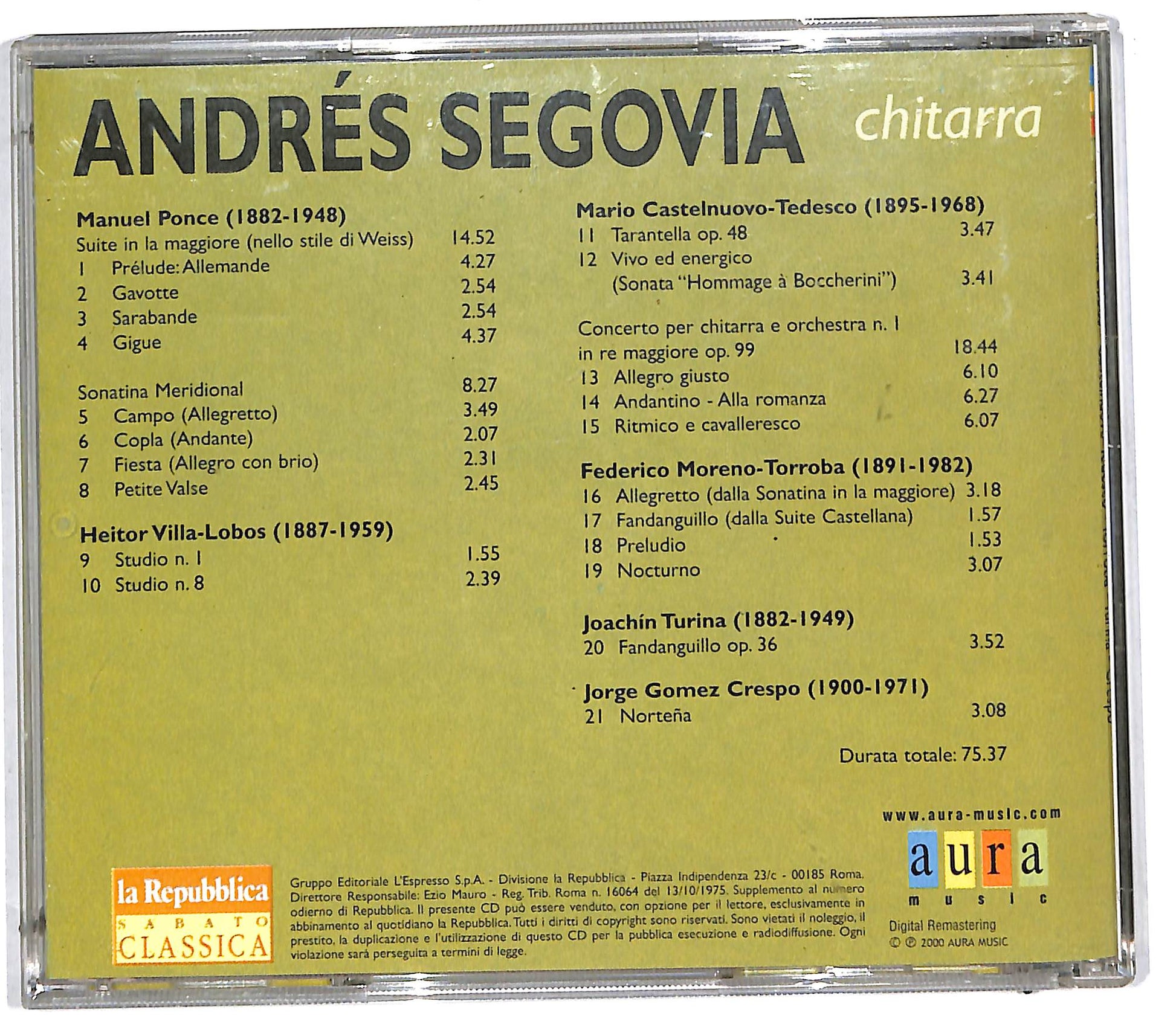 Andres Segovia , Ponce , Crespo , Villa-Lobos , Castelnuovo-Tedesco , Torroba , Turina - Andres Segovia 2