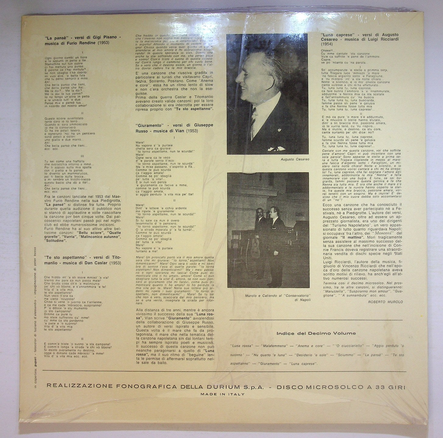 Roberto Murolo - Napoletana - Antologia Cronologica Della Canzone Partenopea - Decimo Volume