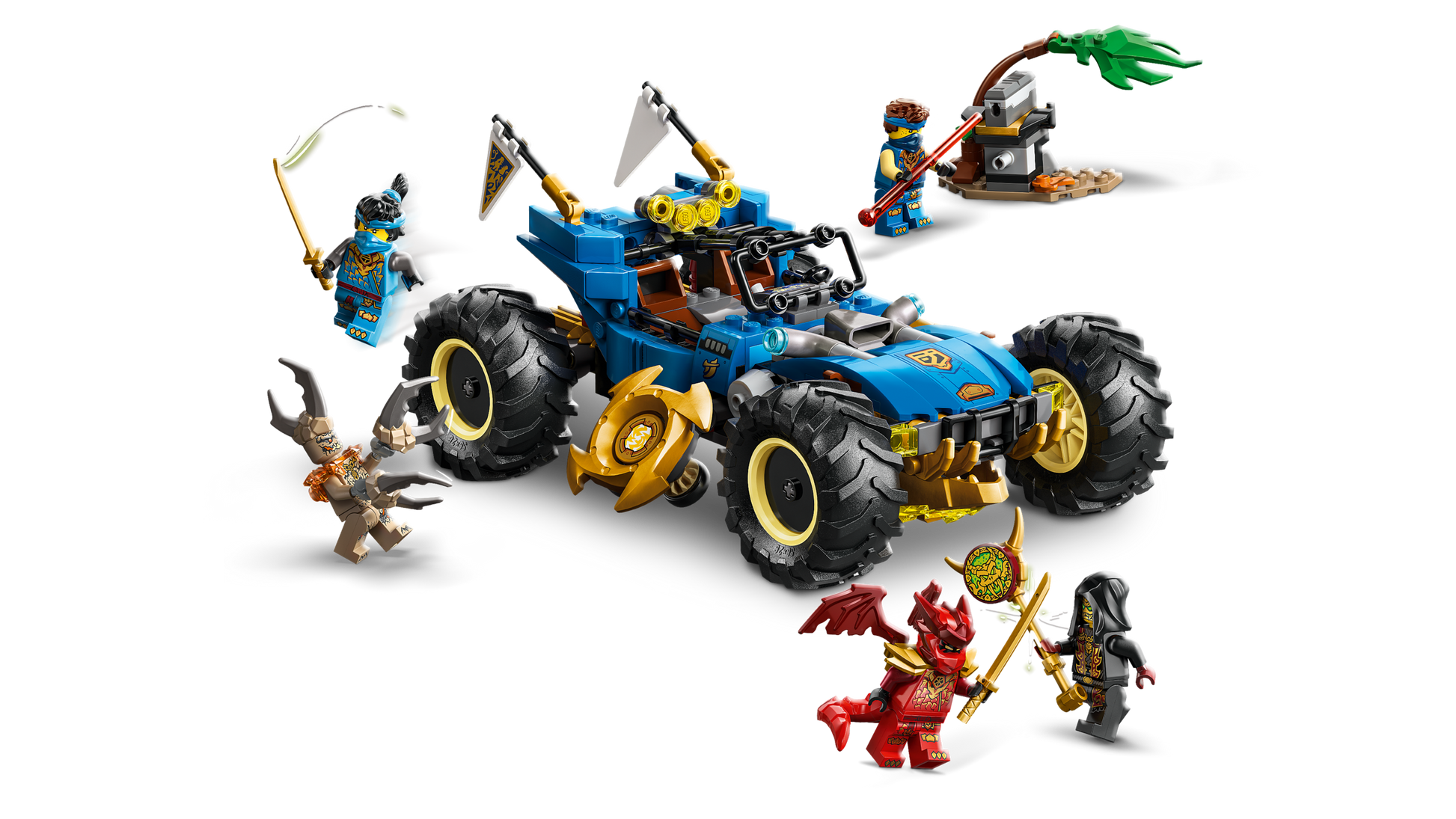 - CARATTERISTICHE DIVERTENTI: l'Auto mutaforma di Jay è dotata anche di uno shooter a molla con 2 frecce, che può essere rimosso e posizionato su un piccolo modello laterale ricoperto di piante per consentire ai bambini di inscenare battaglie