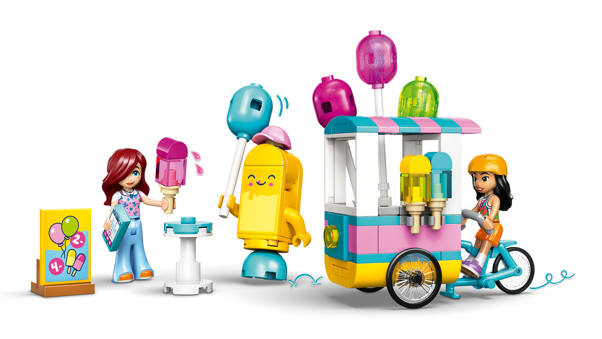 - DIVERTIMENTO CON IL GIOCO DI RUOLO: ispira i bambini a creare le loro storie mentre interpretano i ruoli di cliente e venditore con questo divertente set LEGO® Friends che include un chiosco, una bici, palloncini e gelati