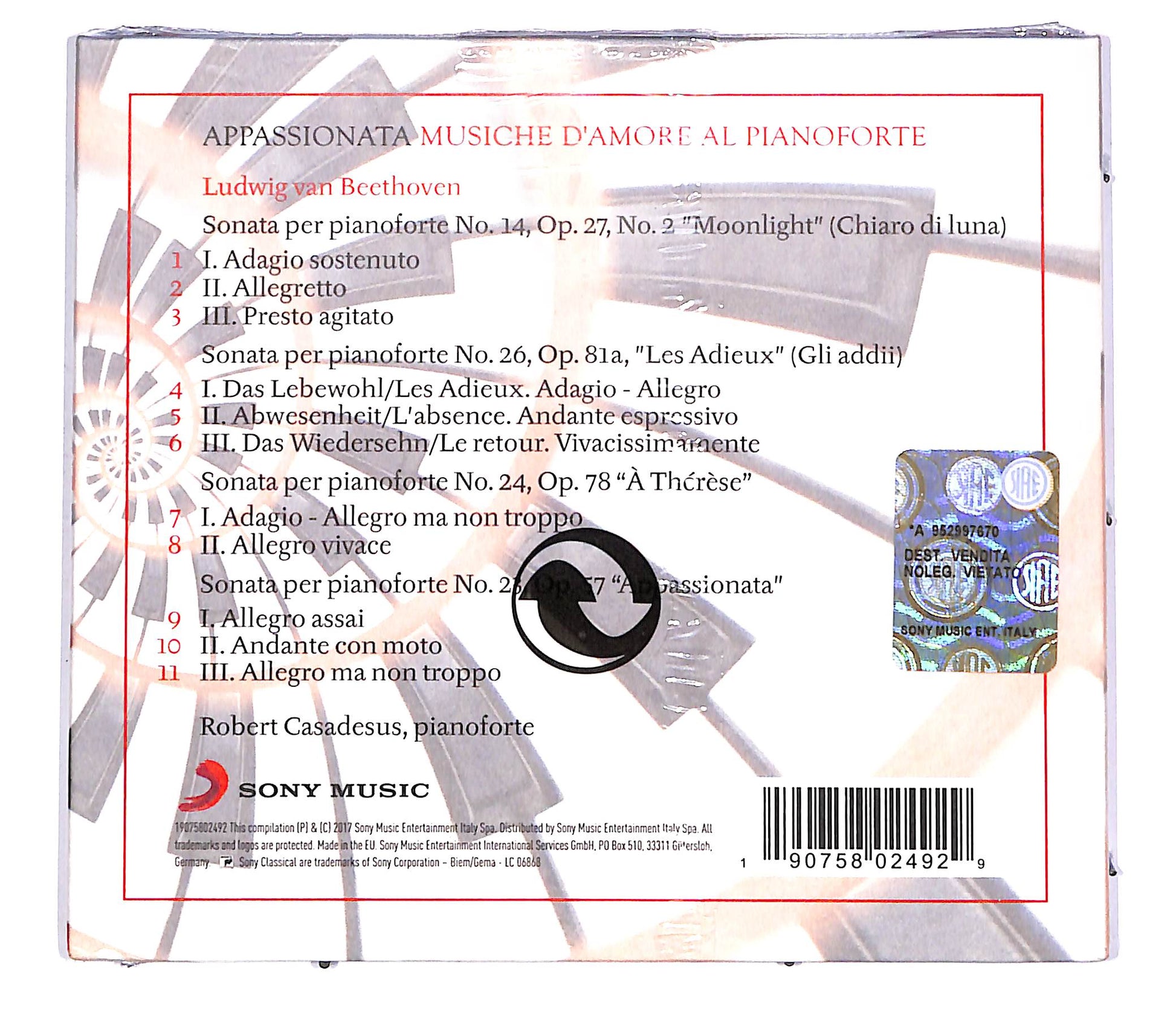 Ludwig van Beethoven, Robert Casadesus - Appassionata - Musiche D'Amore Al Pianoforte