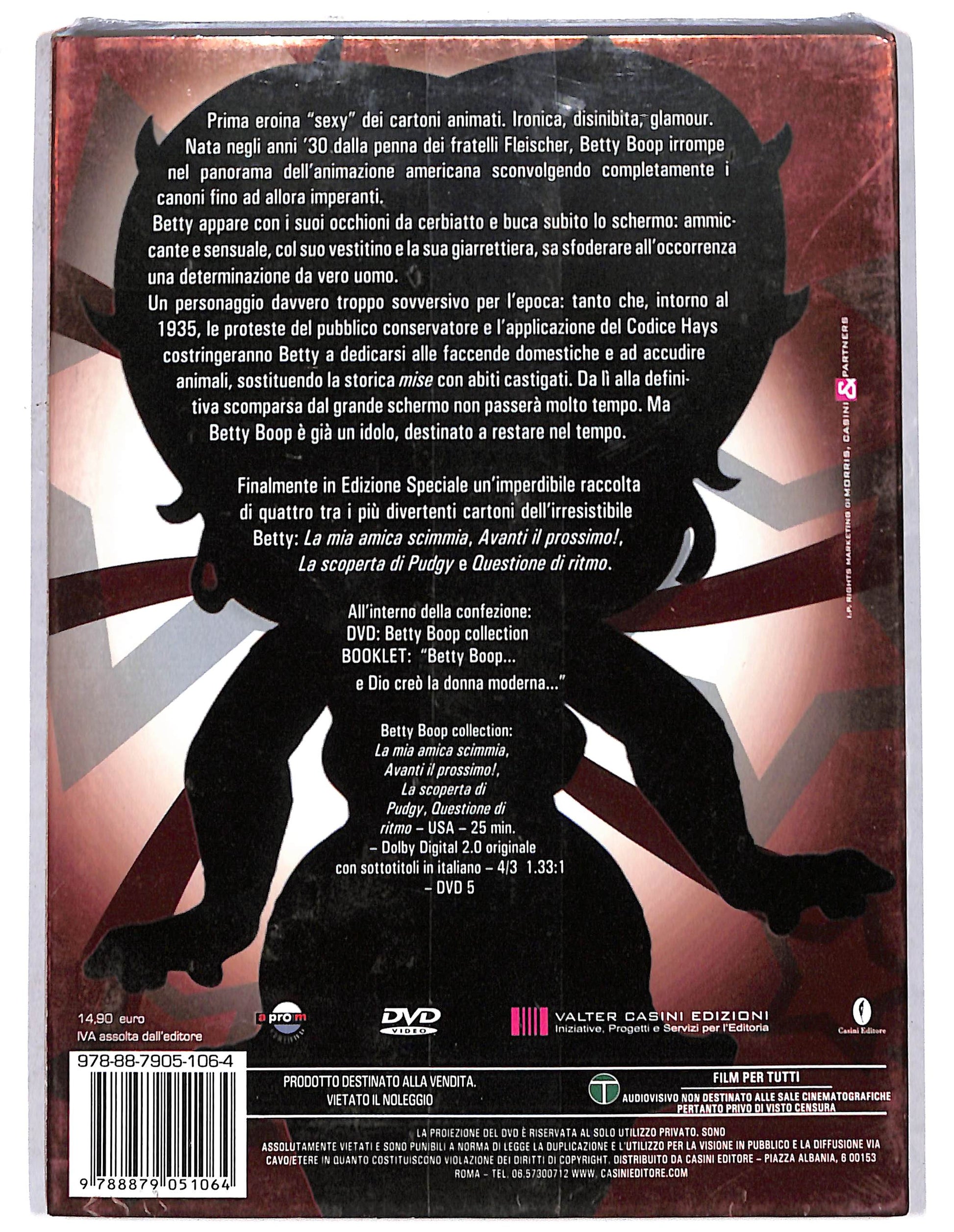 Contenuti Extra : Contiene gli episodi: La mia amica scimmia - Avanti il prossimo! - La scoperta di Pudgy - Questione di ritmo + Booklet : Betty Boop e Dio creo la donna moderma.
