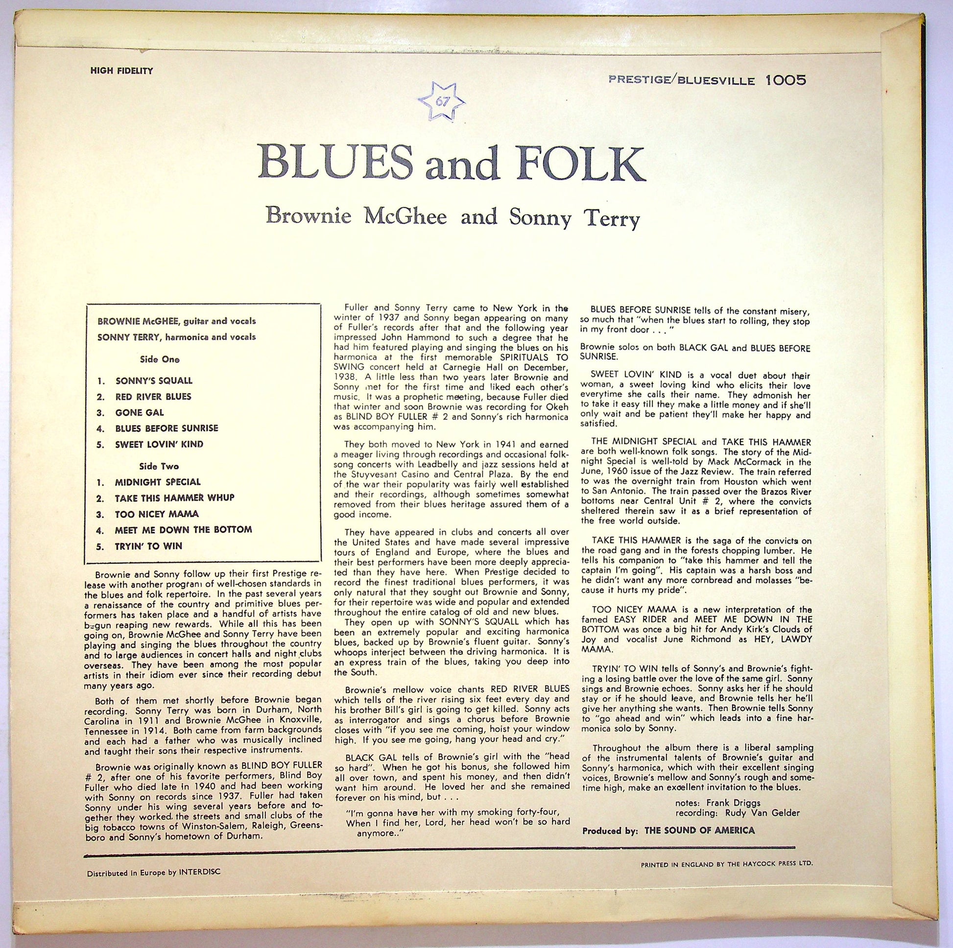 Etichetta: Prestige Bluesville - BVLP 1005