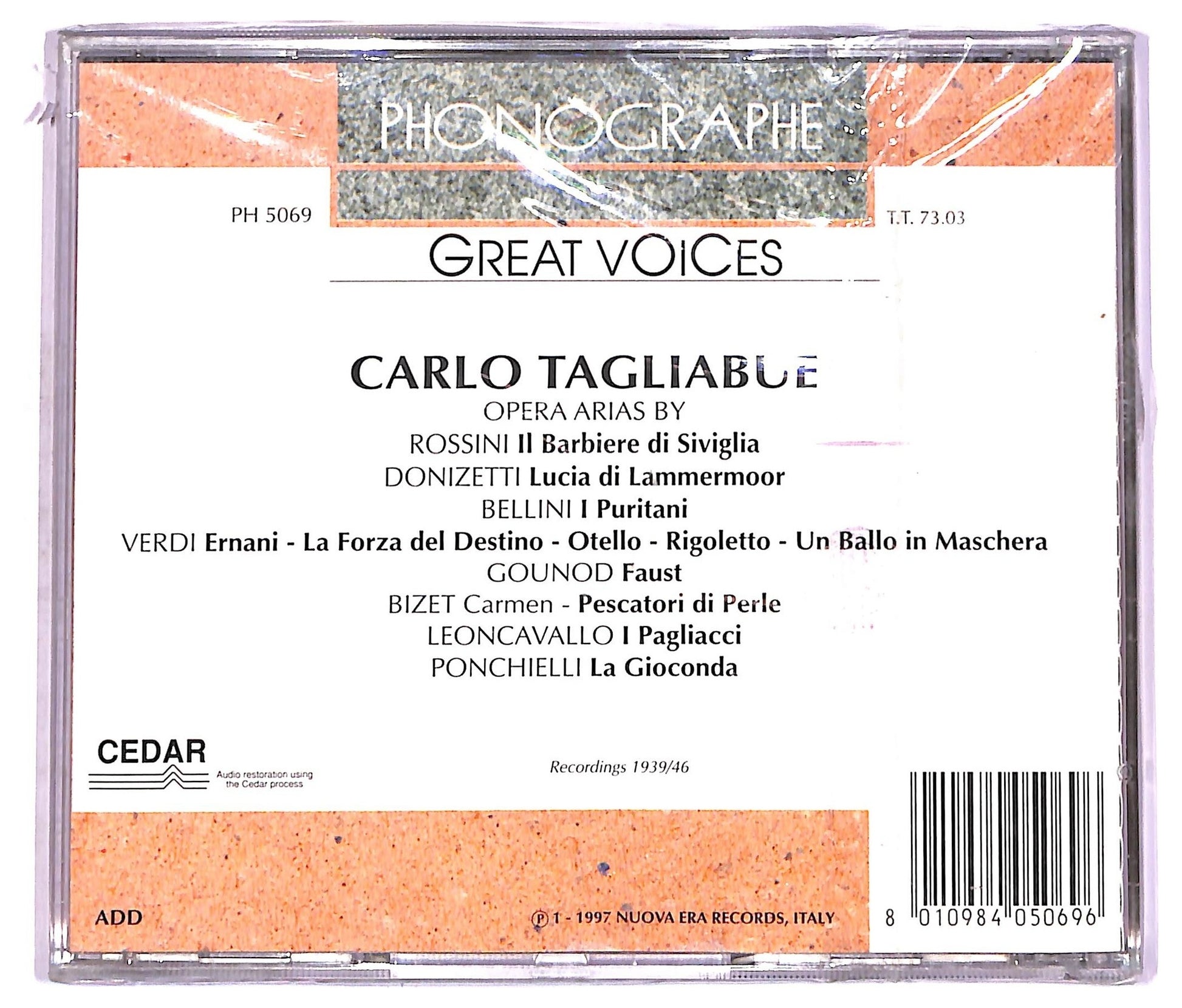 Carlo Tagliabue - Great Voices - Opera Arias By Carlo Tagliabue