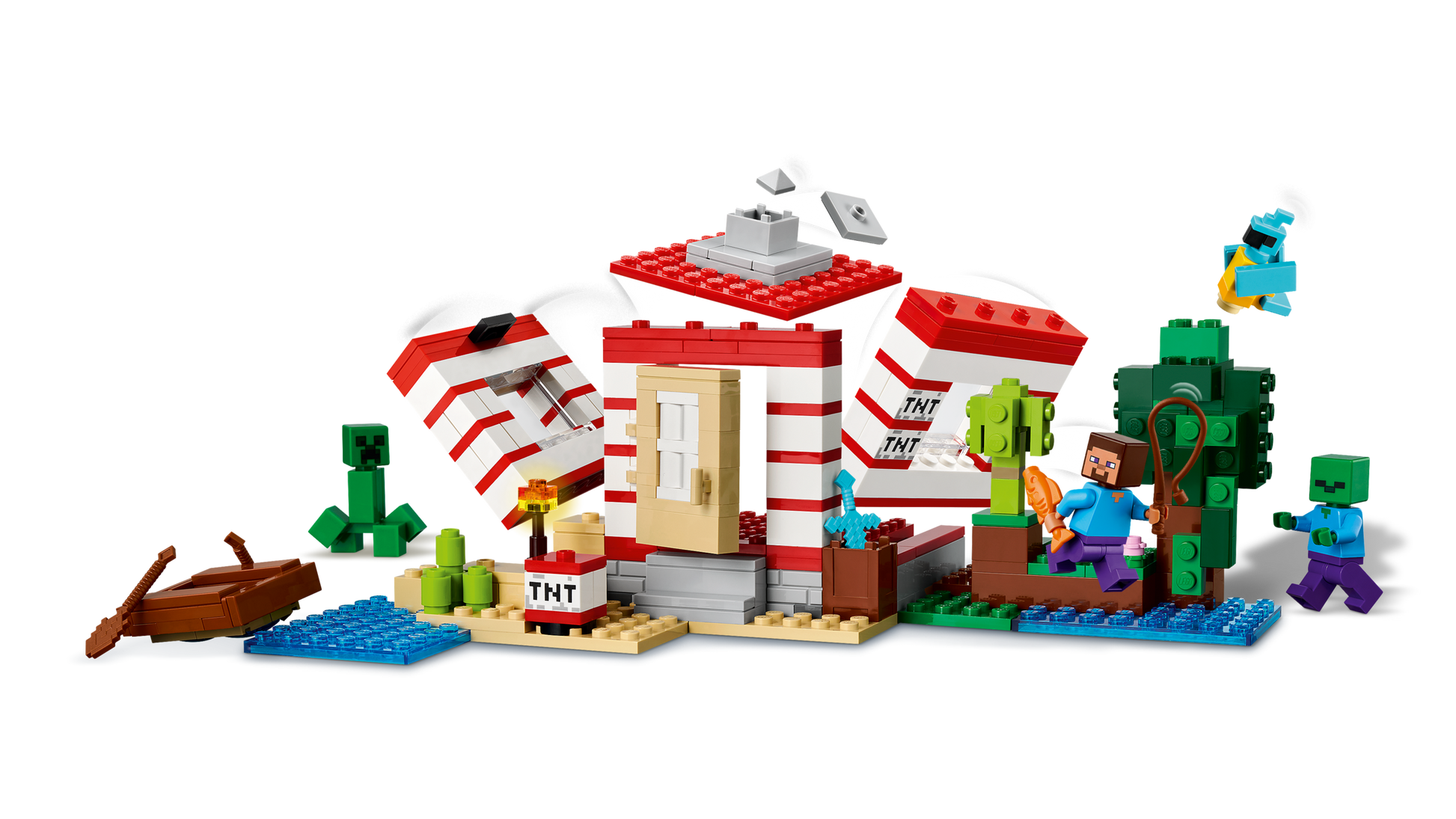 - Giocattolo d'avventura LEGO® Minecraft® esplosivo: i bambini possono premere un interruttore per attivare una funzione di esplosione che fa crollare il soffitto e le pareti della casa