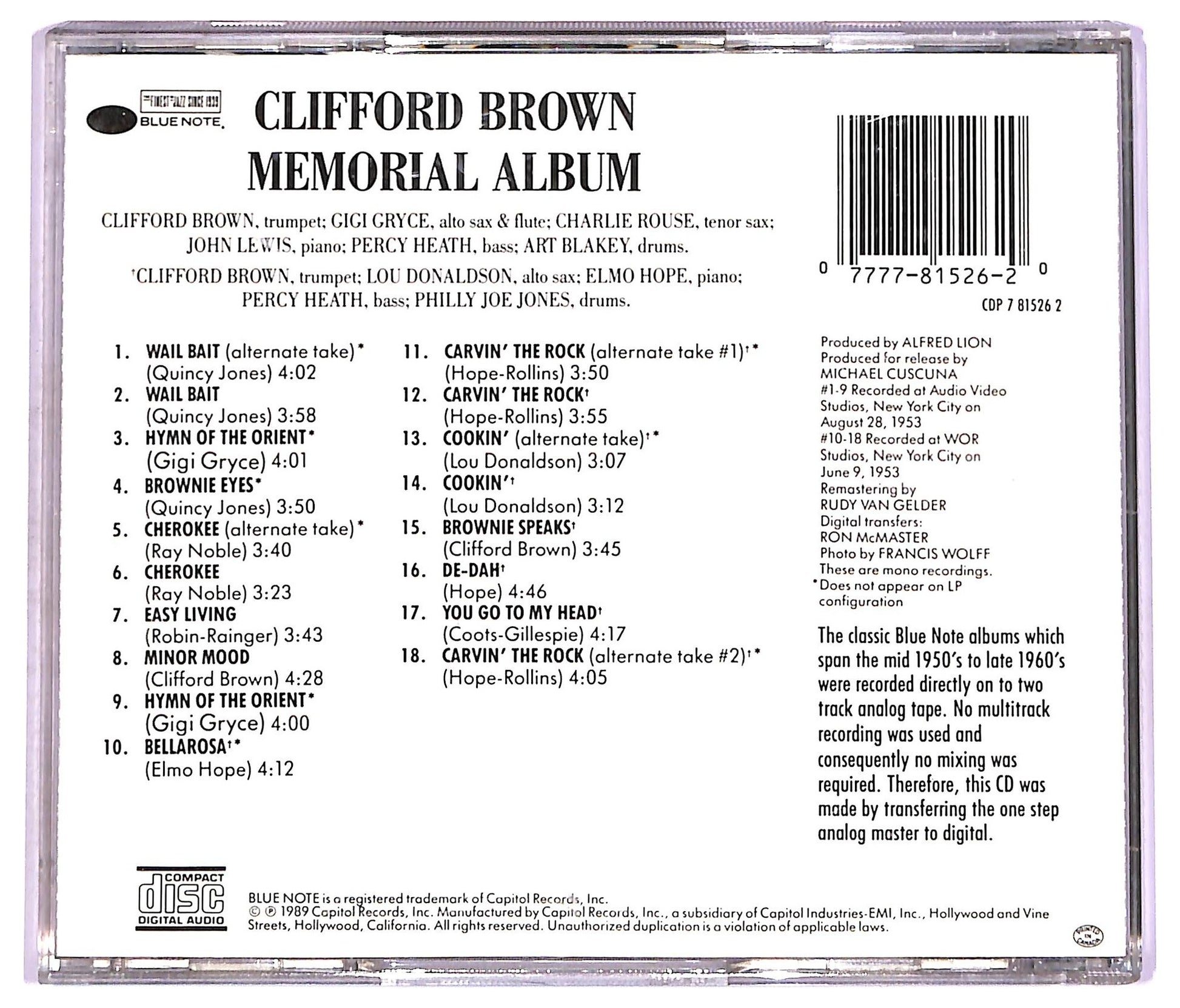 Etichetta: Blue Note - CDP 7 81526 2