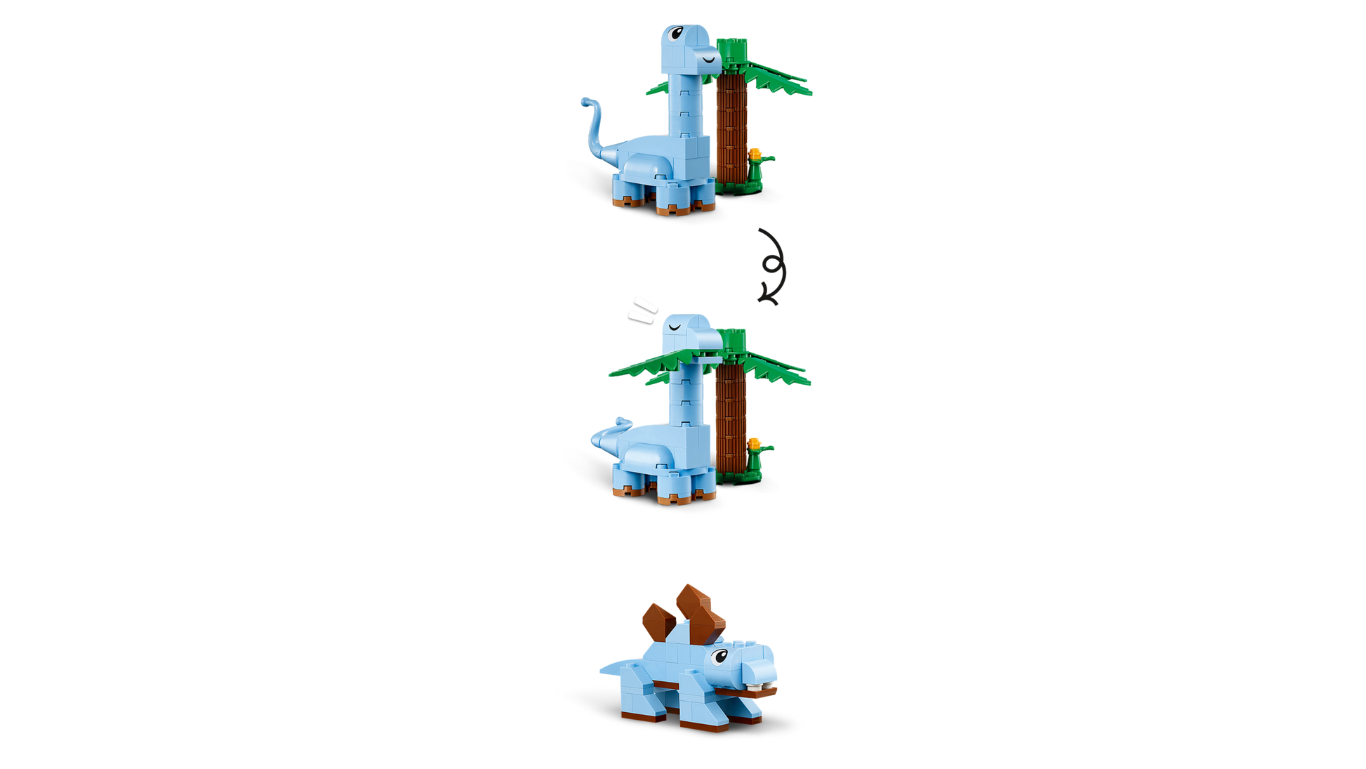 - Gioco di fantasia: i bambini costruiscono giocattoli di T. rex, pterosauro, triceratopo, brontosauro, cuccioli di T. rex, palme e vulcani, quindi creano le proprie creazioni personalizzate