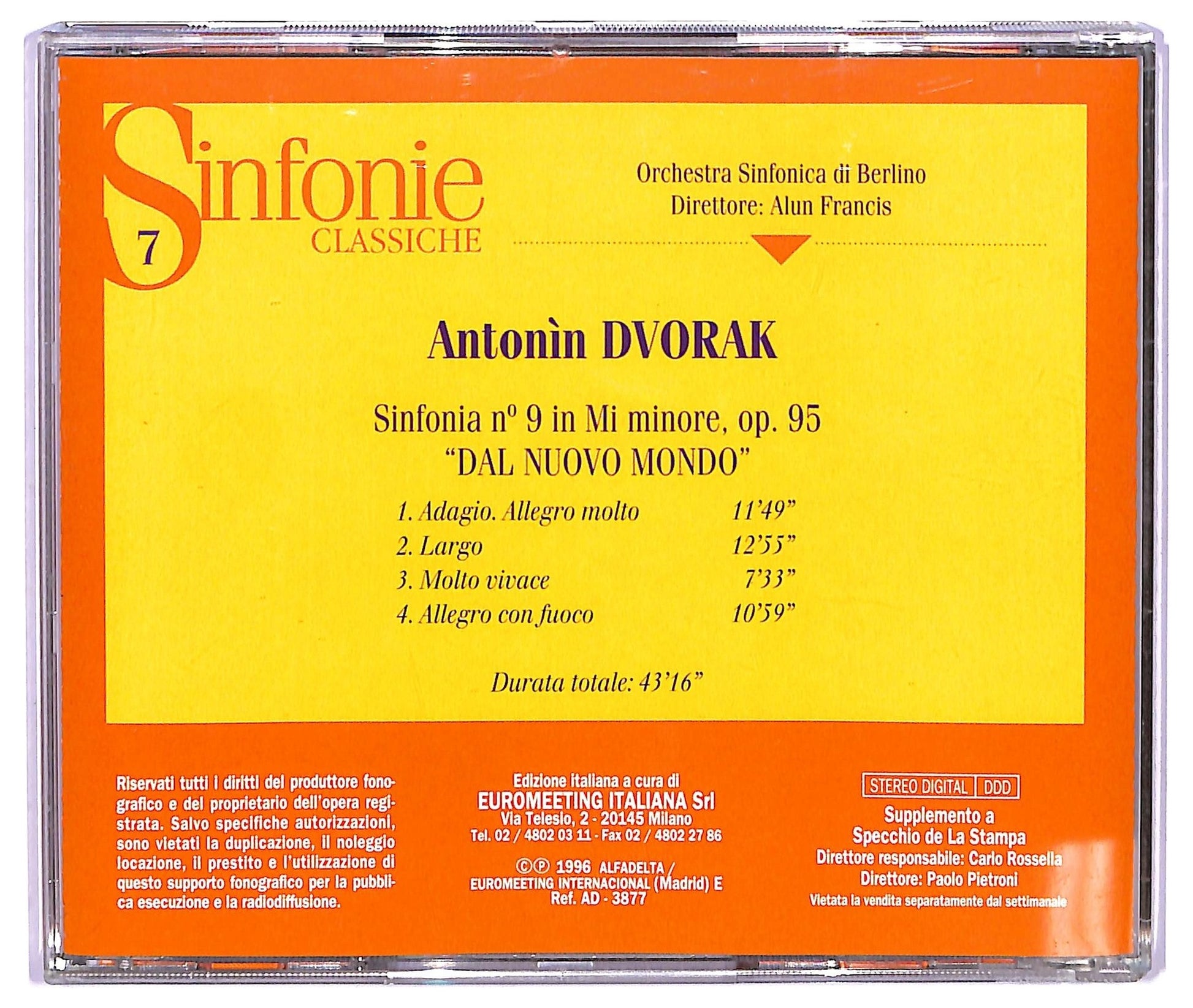 EBOND Dvorak - Sinfonia N, 9 In Mi Minore Op. 95 Dal Nuovo Mondo ALBUM EDITORIALE JEWEL CASE CD CD065757