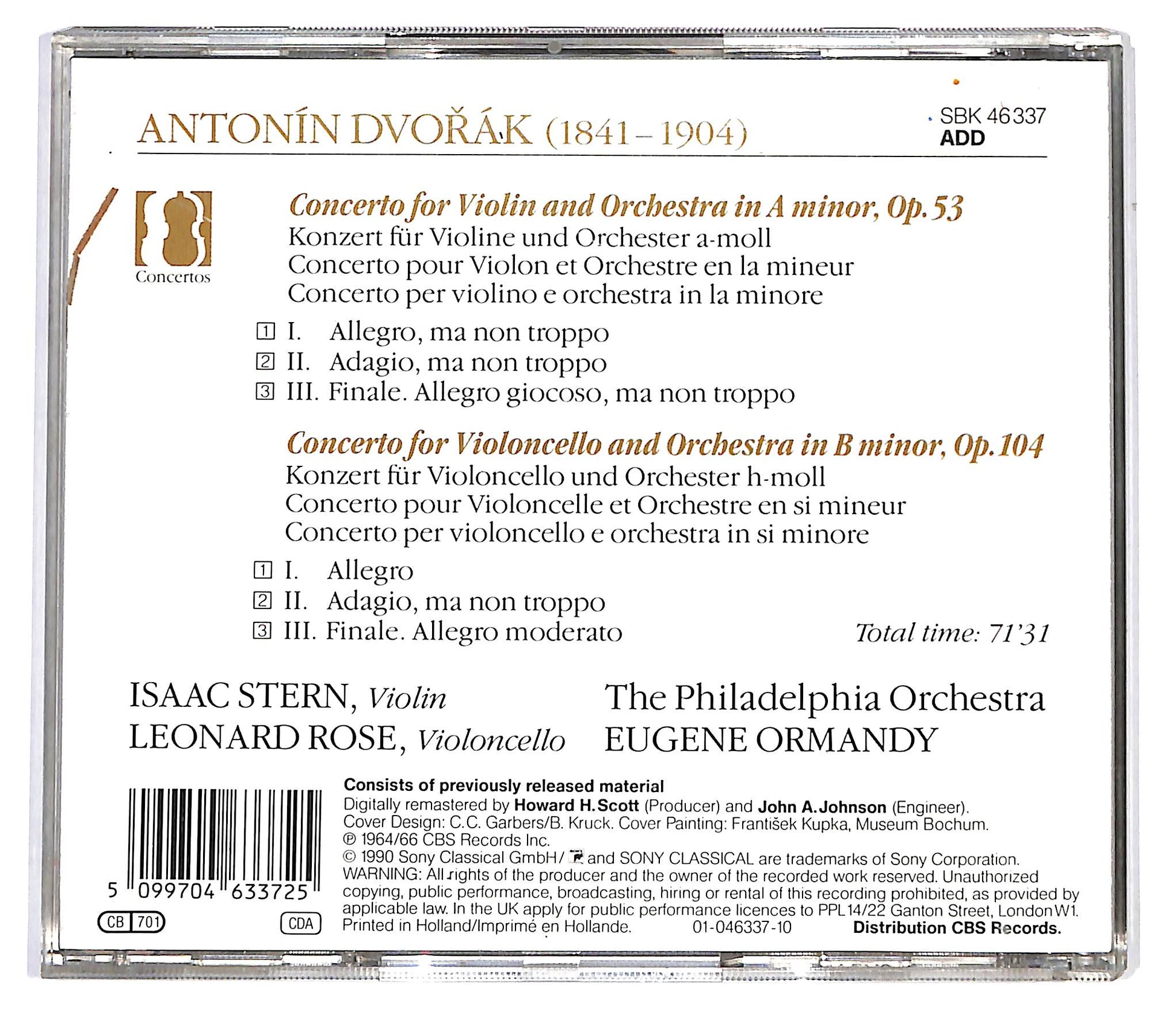 Dvorak: Isaac Stern, Leonard Rose, Eugene Ormandy - Violin Concerto -Cello Concerto