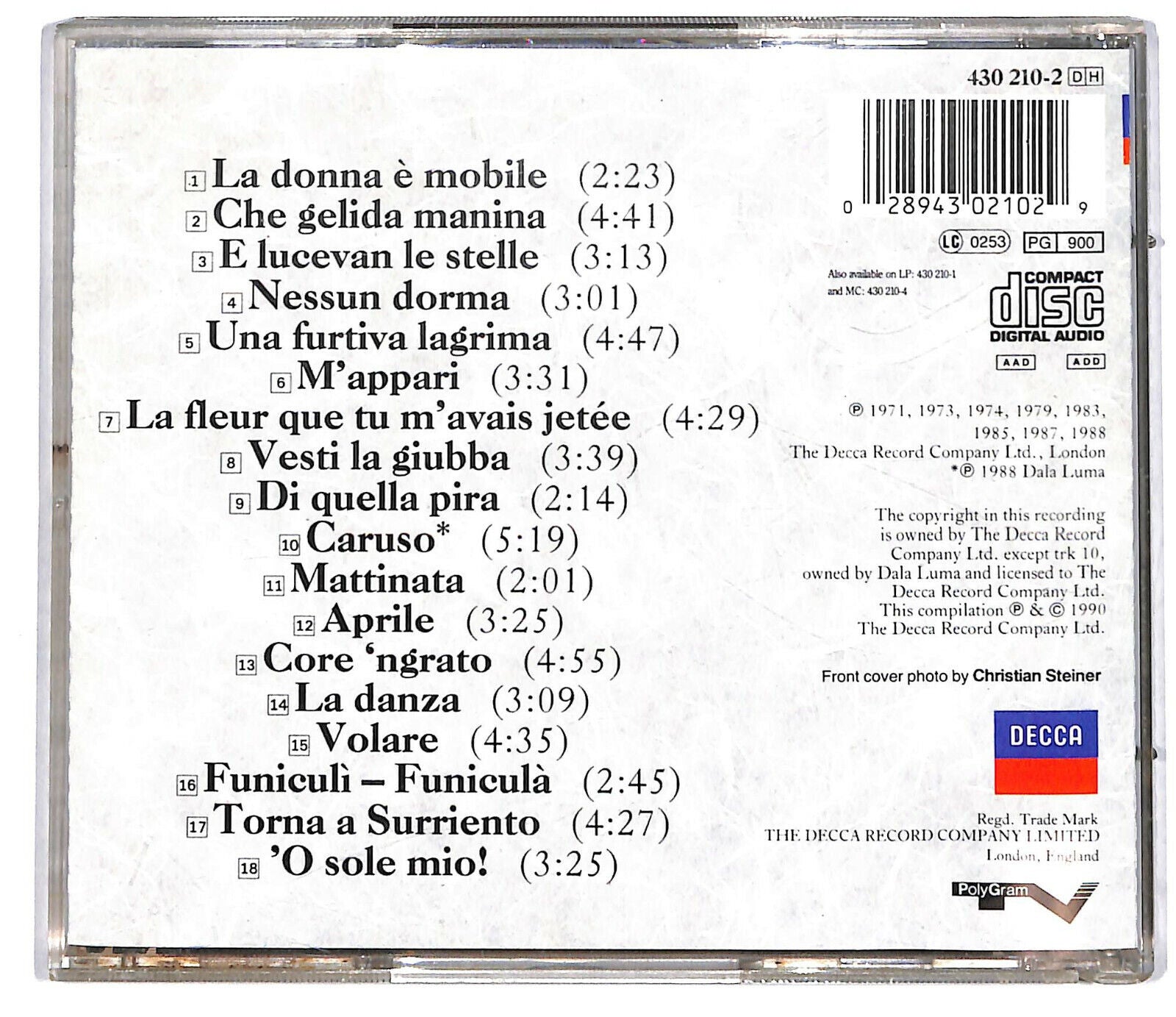 Etichetta:Decca - 430 210-2 DH, PolyGram TV - 430 210-2 DH