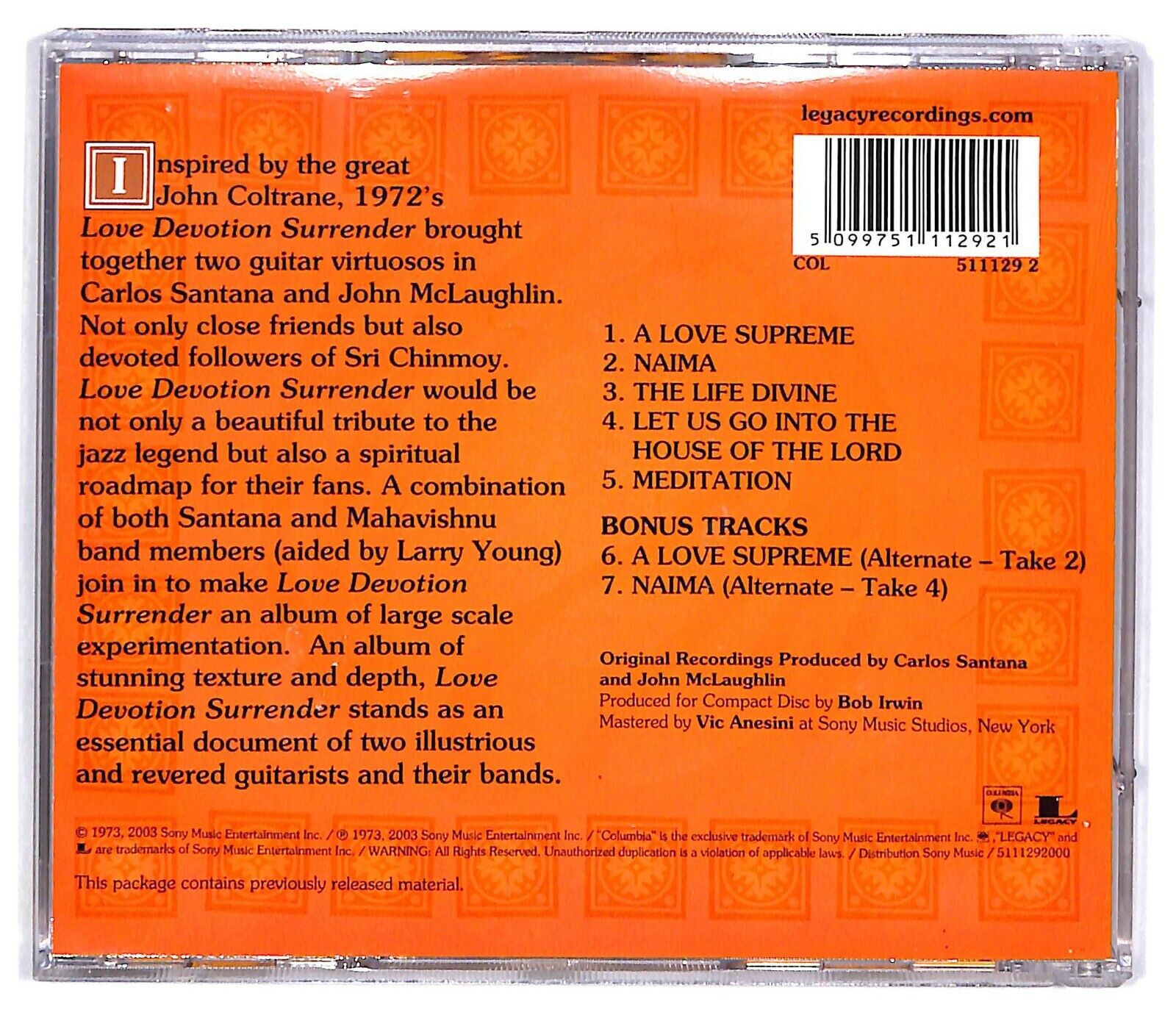 EBOND Santana, Mahavishnu John Mclaughlin - Love Devotion Surrender CD CD033038