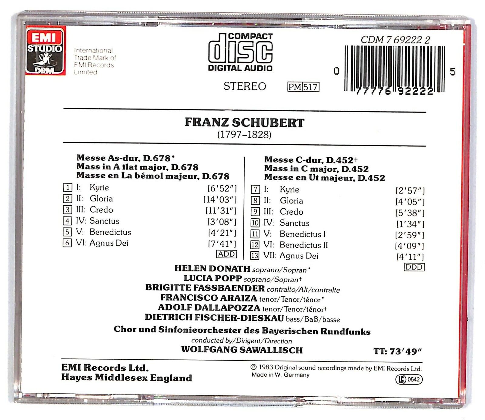 Etichetta: EMI Studio DRM – CDM 7 69222 2