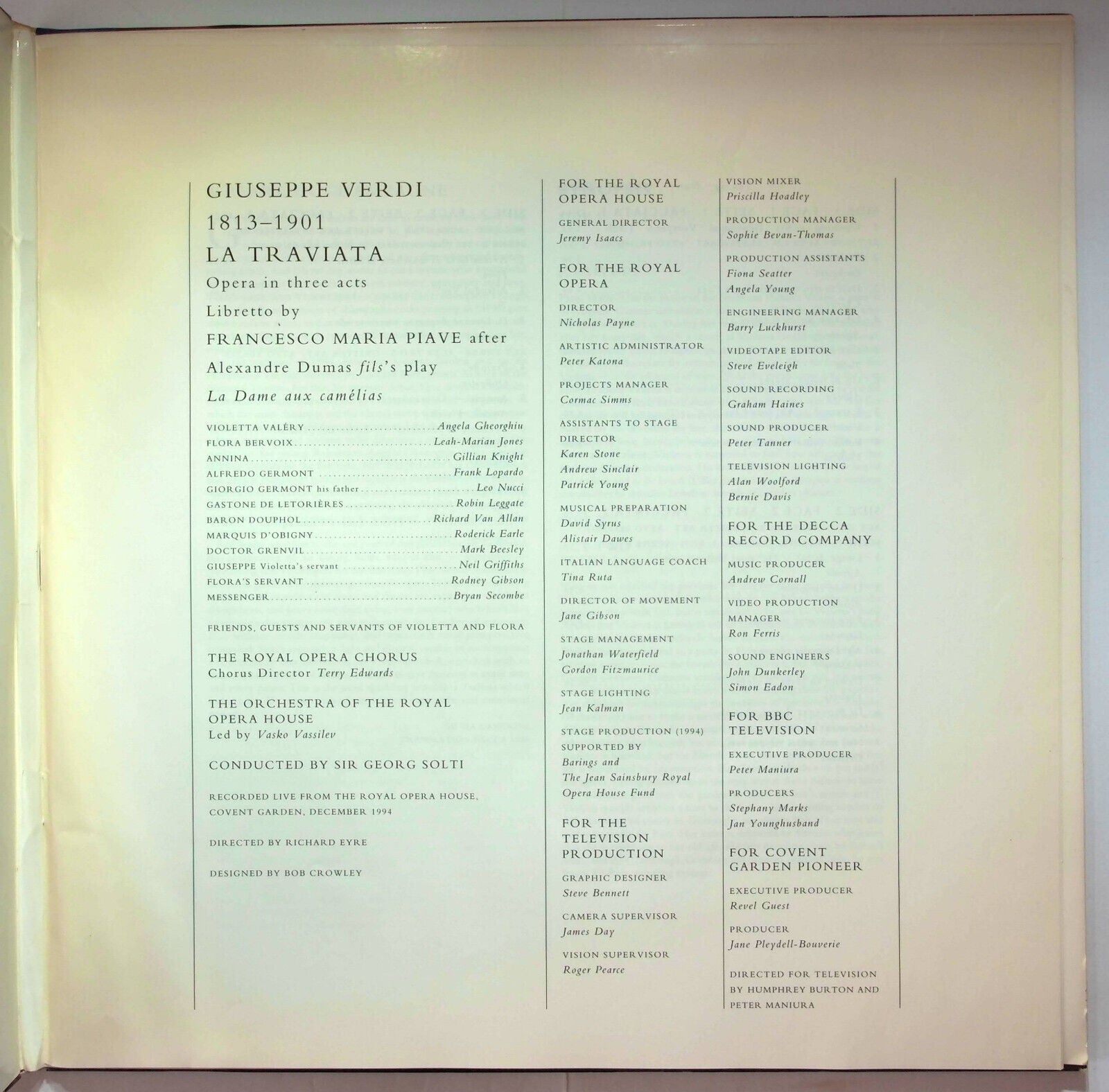 Giuseppe Verdi La Traviata Royal Opera Covent Garden: Gheorghiu/Solti - Laser Disc PAL