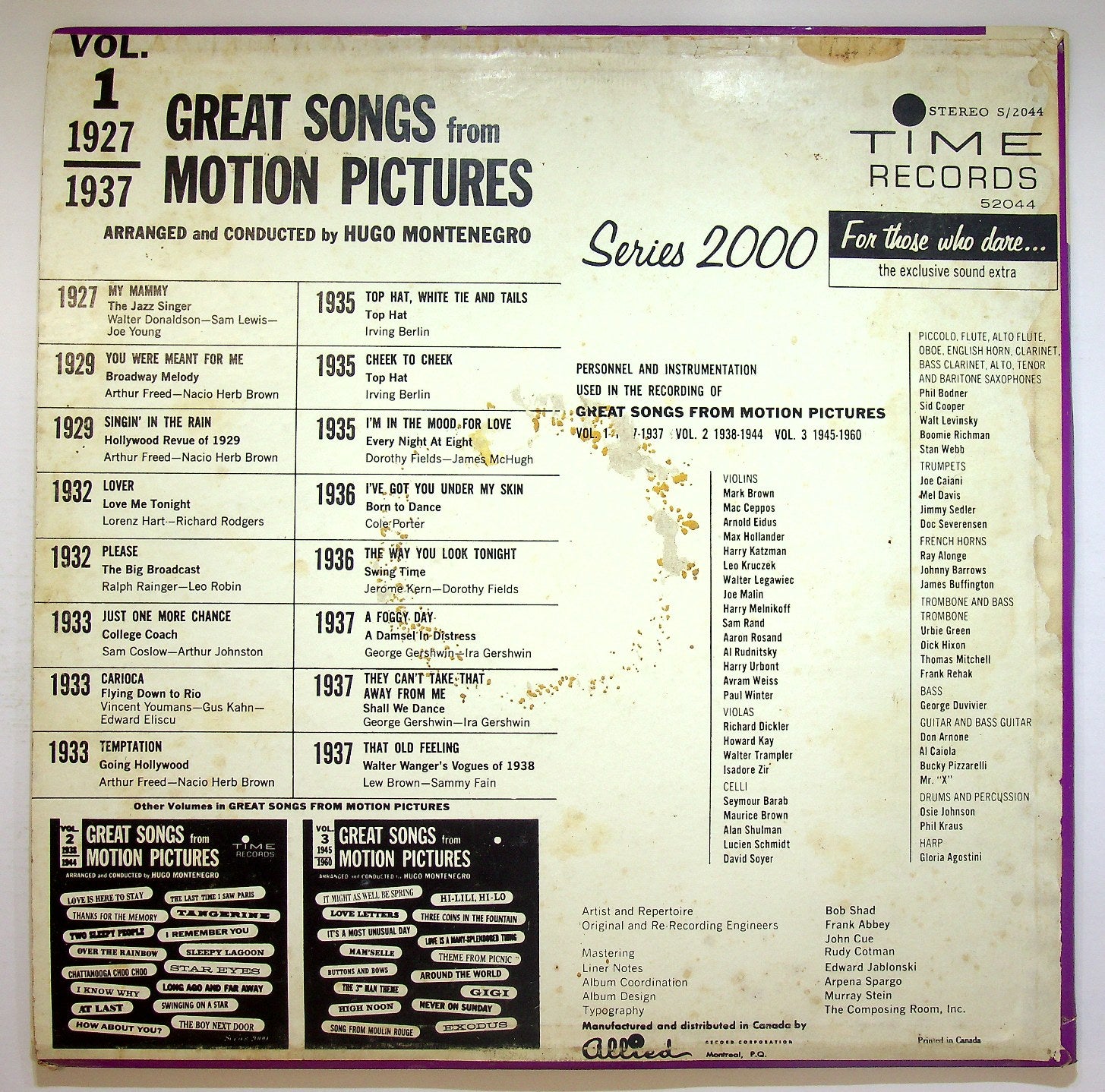 Hugo Montenegro - Great Songs From Motion Pictures (Vol. 1) (1927-1937)