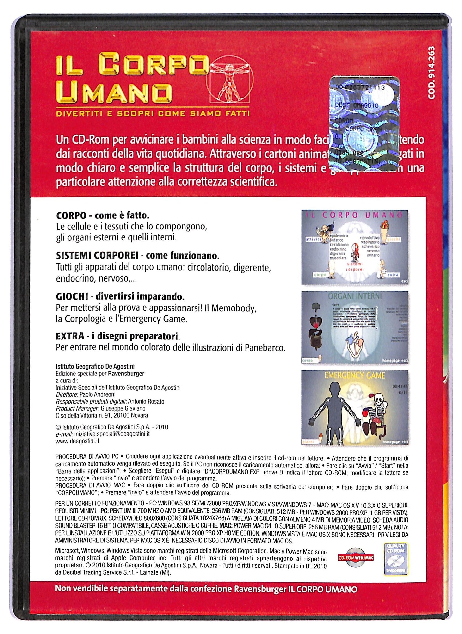 Il corpo umano, divertiti e scopri come siamo fatti EDITORIALE DVD - Corpo - come e fatto - sistemi corporei - come funzionano - giochi - divertirsi imparando - extra - i disegni preparatori anno 2010