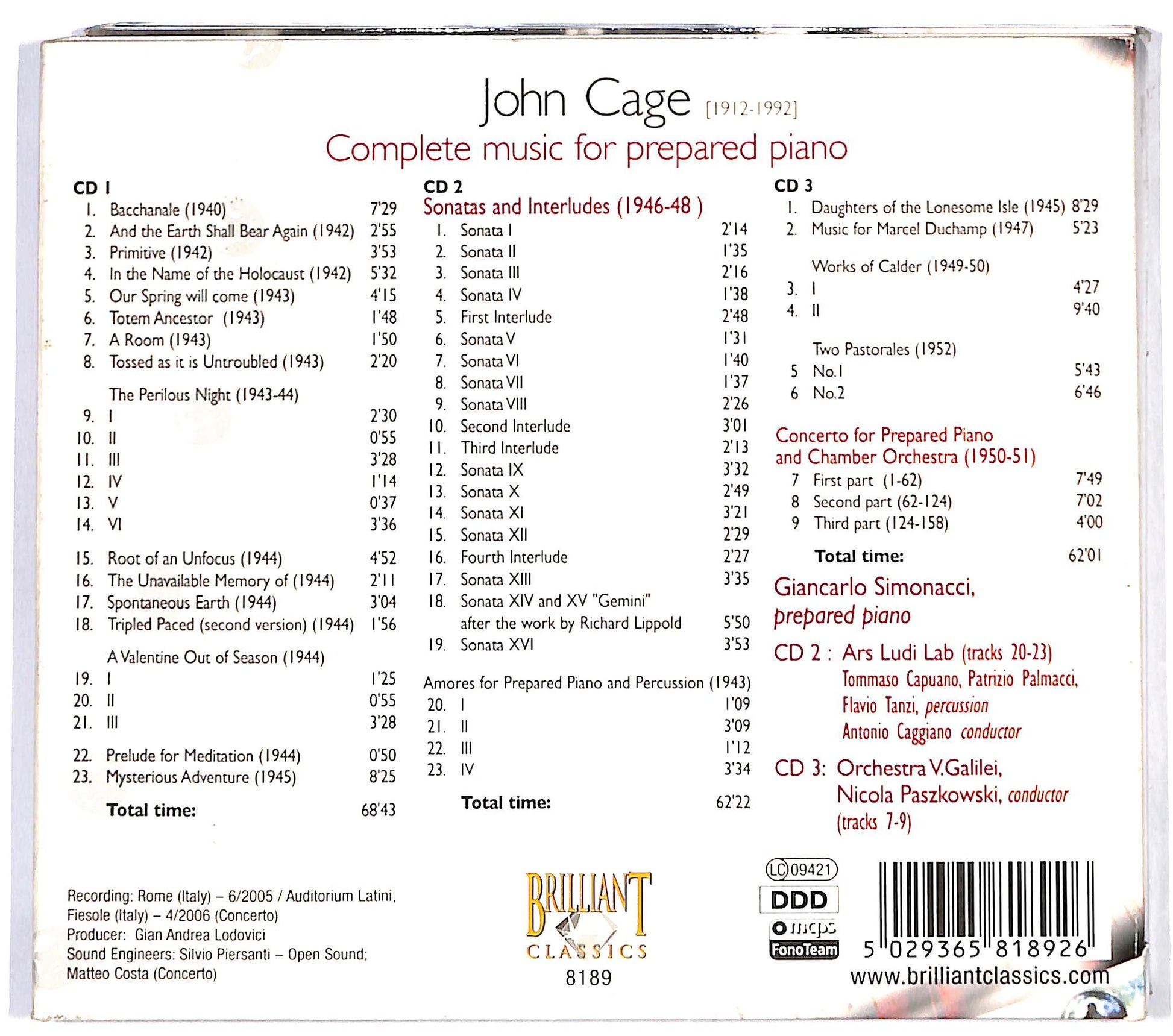 John Cage , Giancarlo Simonacci - Complete Music For Prepared Piano