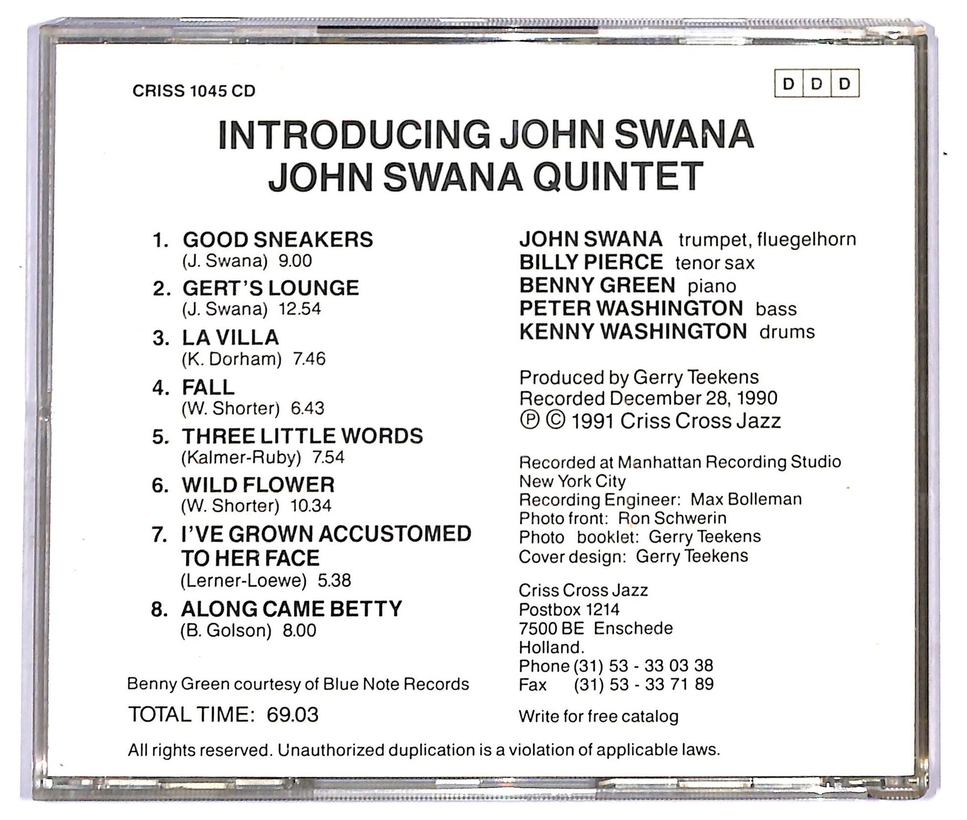 Etichetta: Criss Cross Jazz – Criss 1045 CD