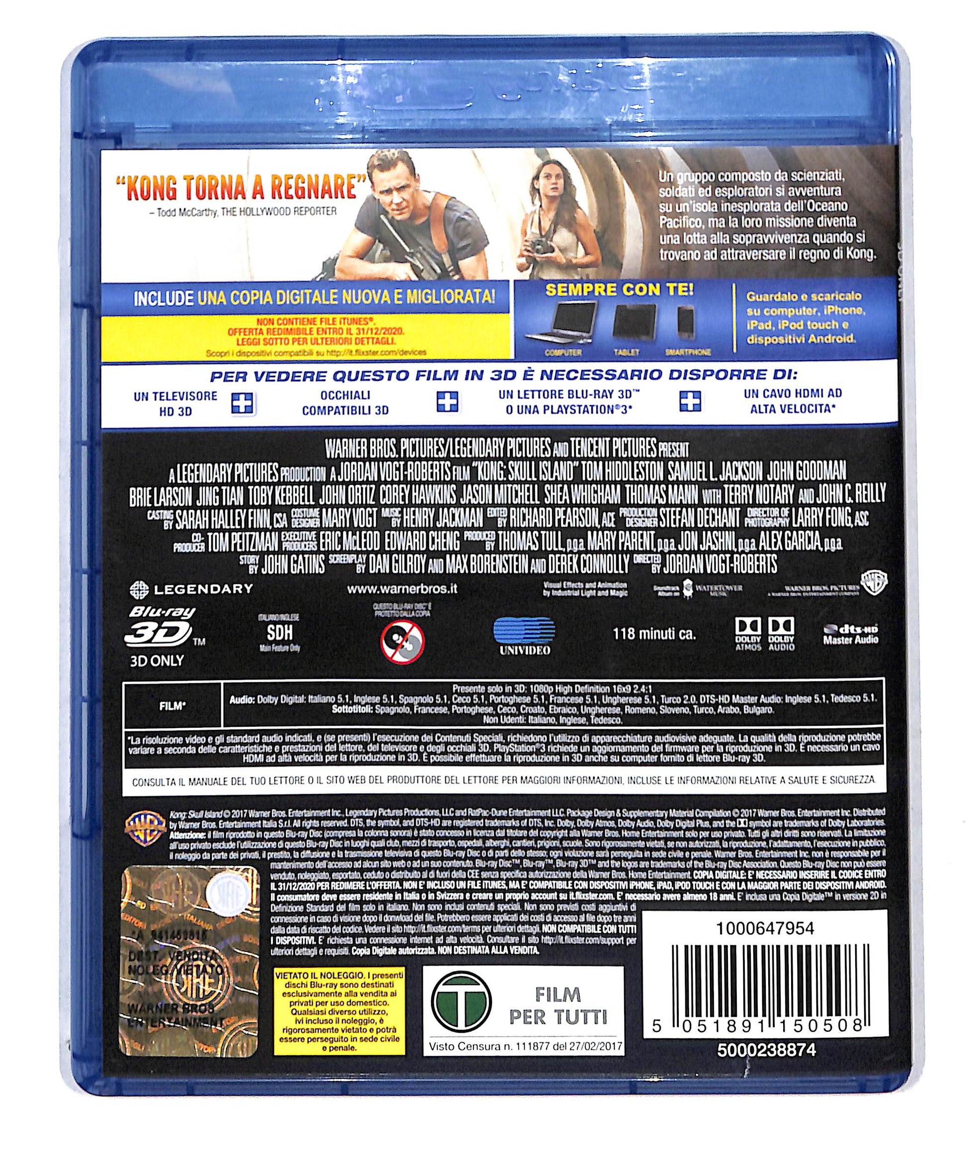 EBOND Kong Skull Island BLURAY 3D + COPIA DIGITALE + BLURAY BLURAY DB777873
