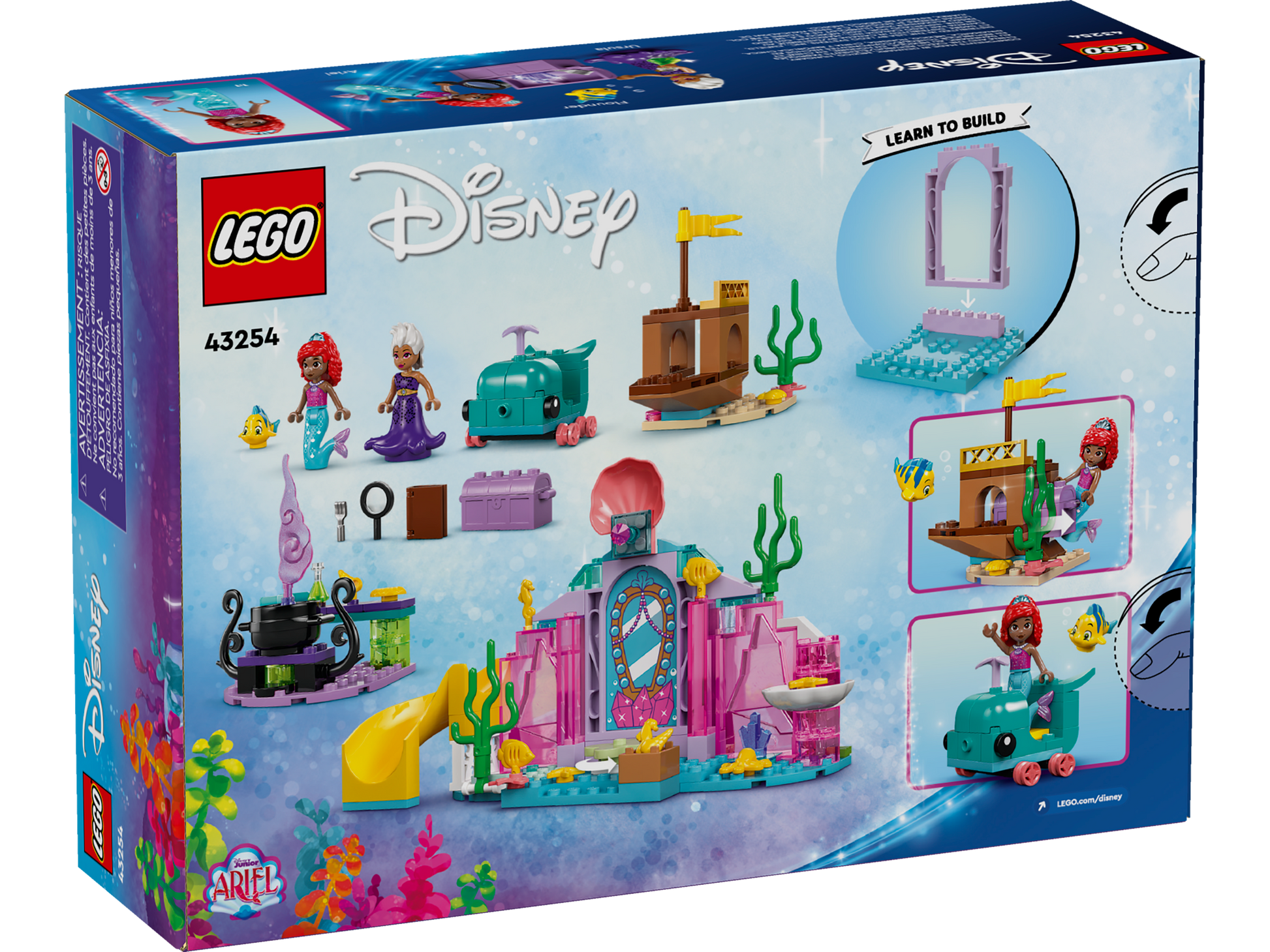 - Prontoper il gioco creativo: questo set costruibile contiene una caverna di cristallo ispirata al programma Ariel Disney Junior, le mini-doll di Ursula e Ariel LEGO® ? Disney e il pesce Flounder LEGO ? Disney.