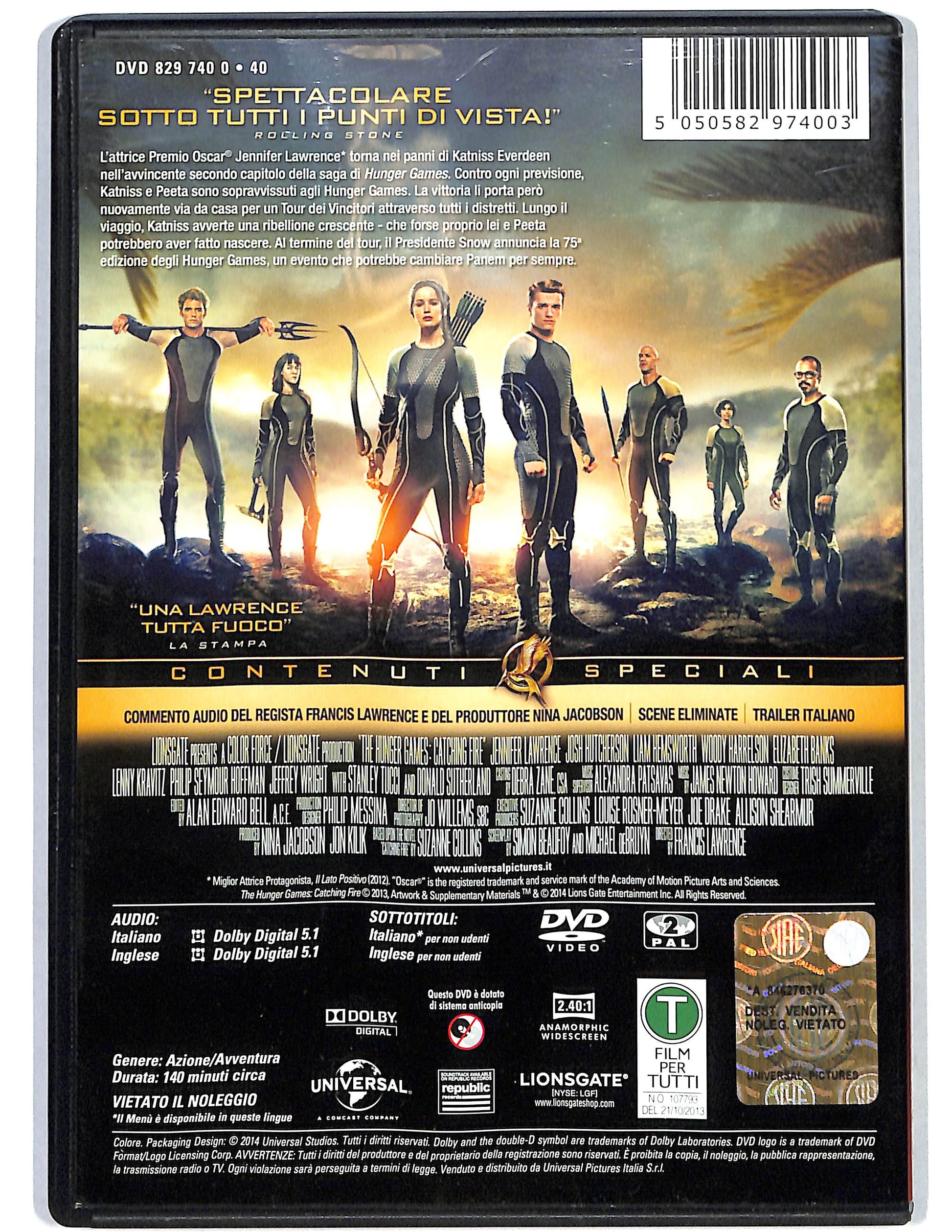 Attori: Jennifer Lawrence, ennifer Lawrence, Josh Hutcherson, Liam Hemsworth, Woody Harrelson, Elizabeth Banks, Lenny Kravitz, Philip Seymour Hoffman, Jeffrey Wright, Stanley Tucci, Donald Sutherland, Toby Jones, Willow Shields, Sam Claflin, Lynn Cohen, Jena Malone, Amanda Plummer, Taylor St. Clair, Paula Malcomson, Alan Ritchson, Stephanie Leigh Schlund, Meta Golding, Bruno Gunn, Daniel Bernhardt, Tipo, enere, odice regionale, ormato, egista, Formato, Formato immagine, Studio, Durata, Anno di pubblicazione=2013
