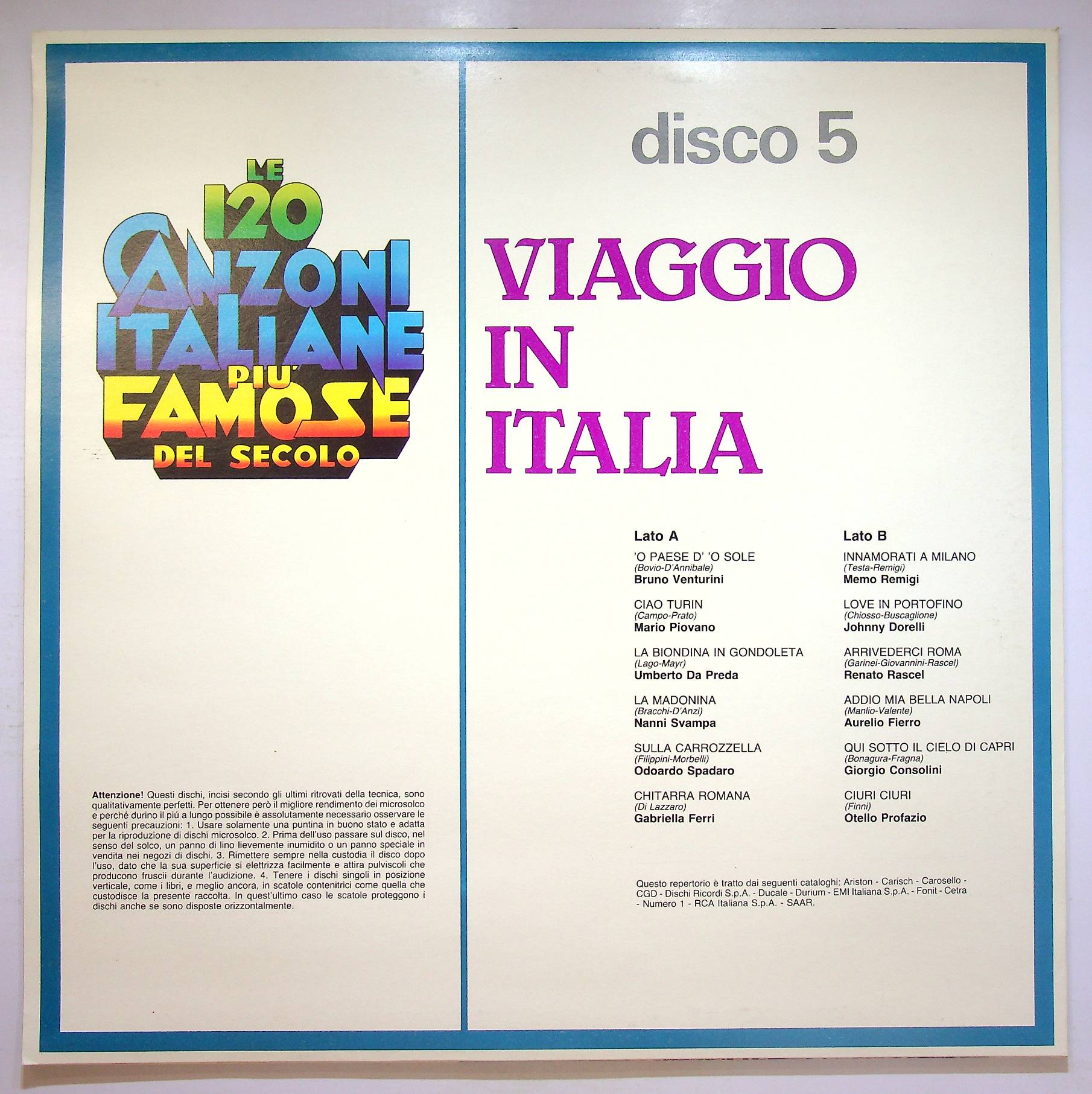 Le 120 Canzoni Italiane Piu Famose Del Secolo - Disco 5 - Viaggio In Italia
