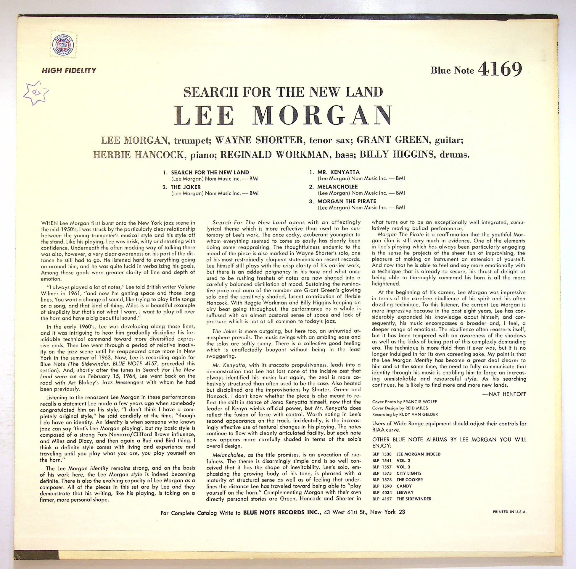Etichetta: Blue Note - BLP 4169