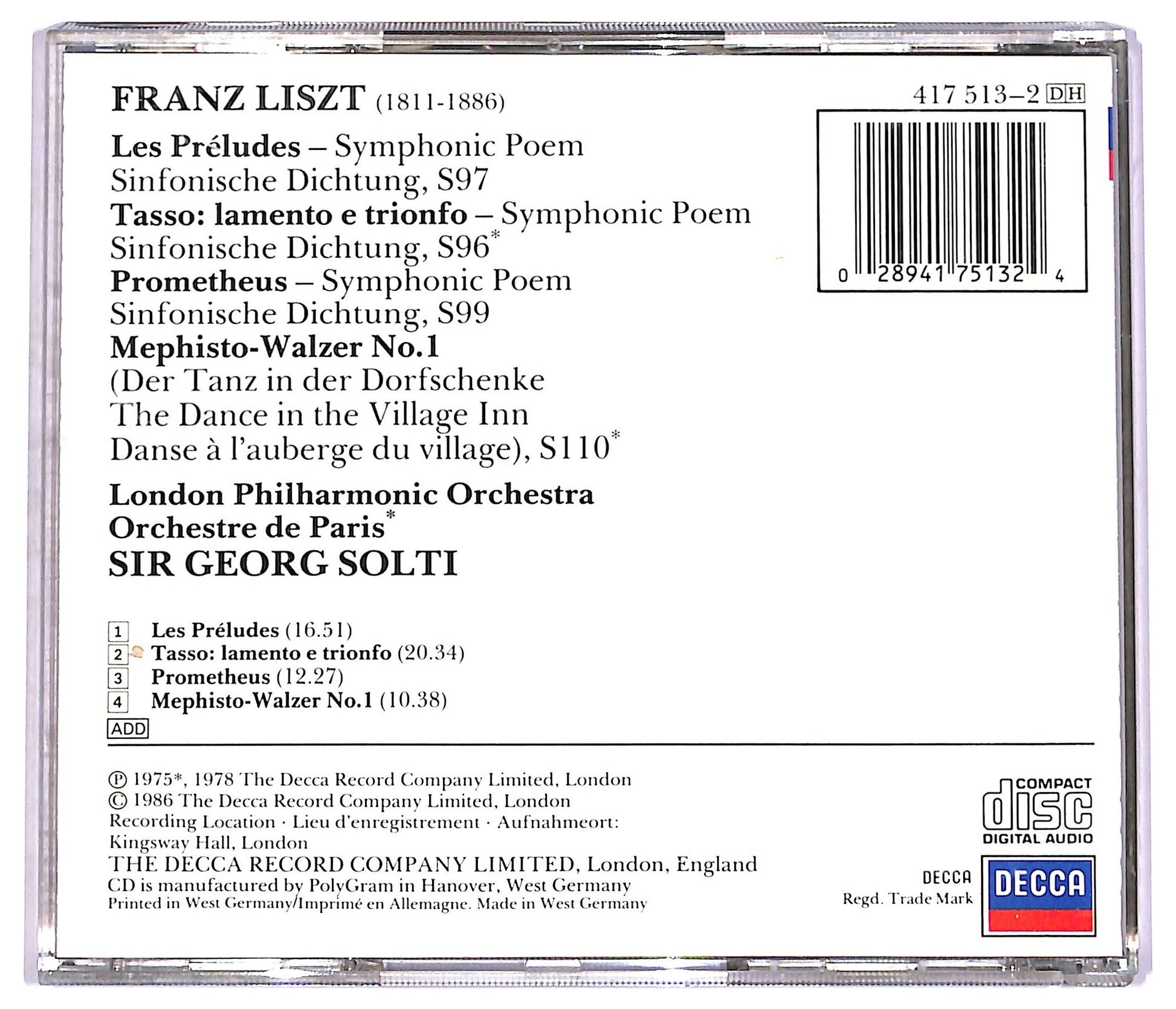 EBOND Liszt - Les Preludes Tasso Prometheus Mephisto-Walzer No. 1 CD CD078619