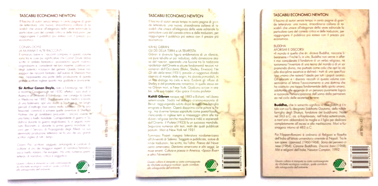 Aforismi e discorsi di Buddha , Gli dei della terra di Kahlil Gibran , La mummia e altri racconti di Conan Doyle