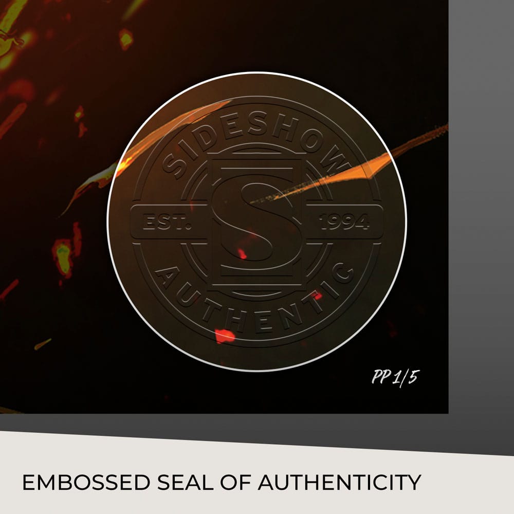 Originally created as a variant cover for Cosmic Ghost Rider #4 (2018), written by Donny Cates for Marvel Comics, this Ghost Rider collectible is now available to fans as an unframed giclée print or in a custom framed presentation. Each Cosmic Ghost Rider Fine Art Print features an embossed Sideshow Seal of Authenticity as part of the limited edition of 150 pieces.
