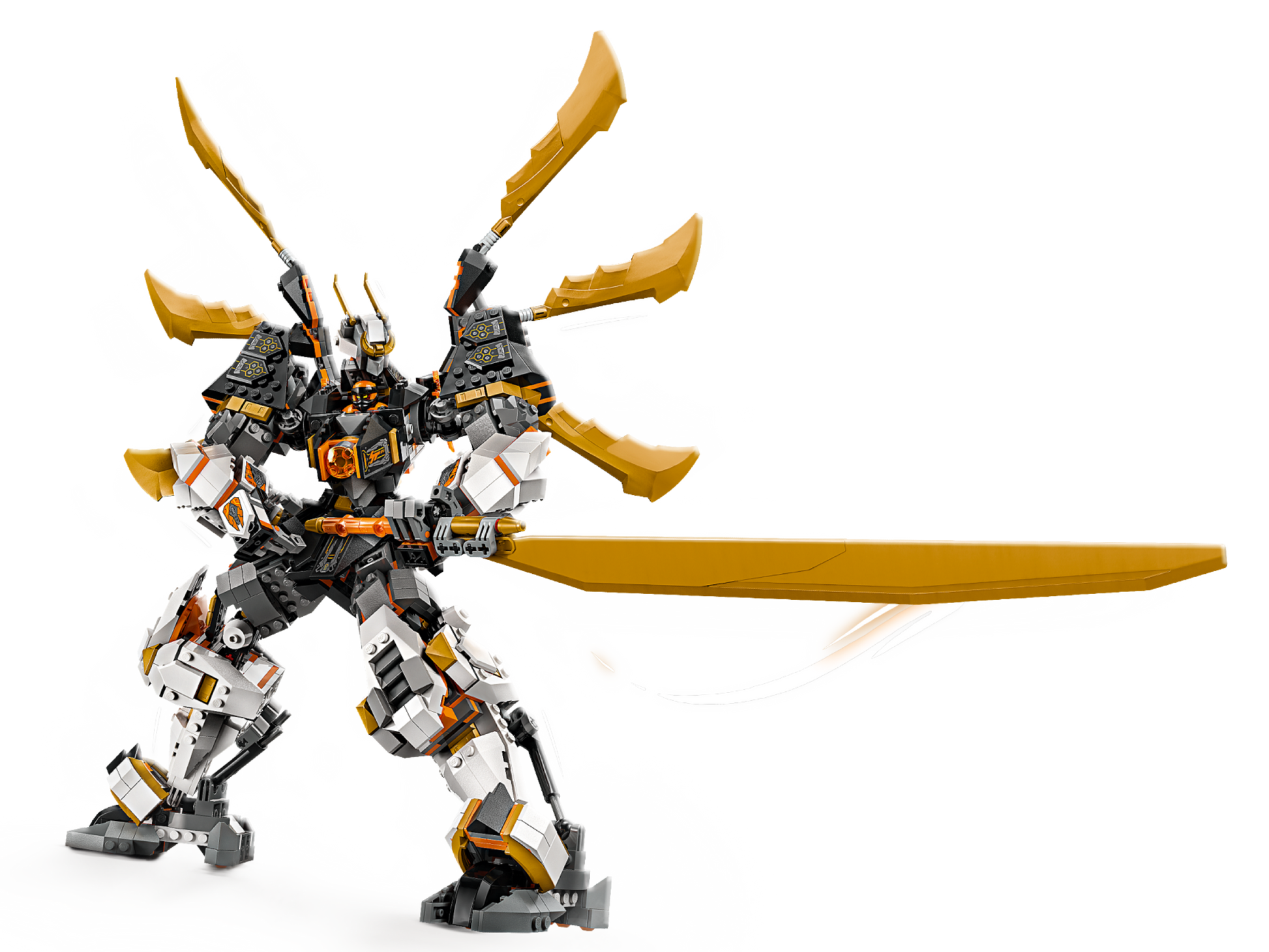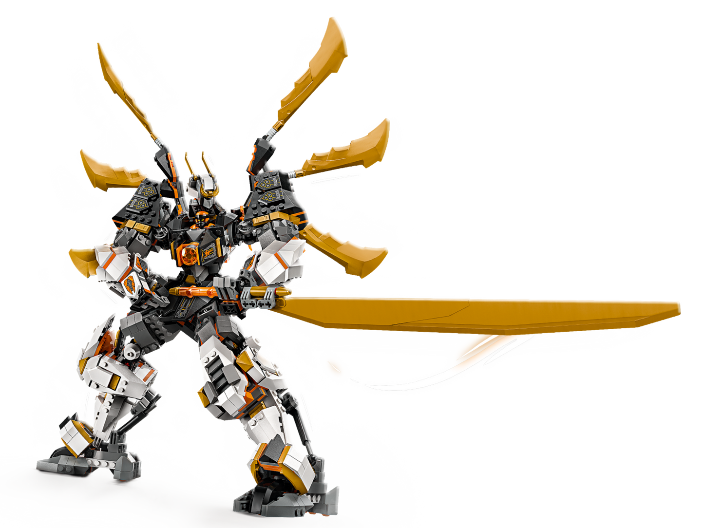 - 1 minifigure NINJAGO®: il set di gioco ninja contiene Mech Cole con 2 spade katana dorate