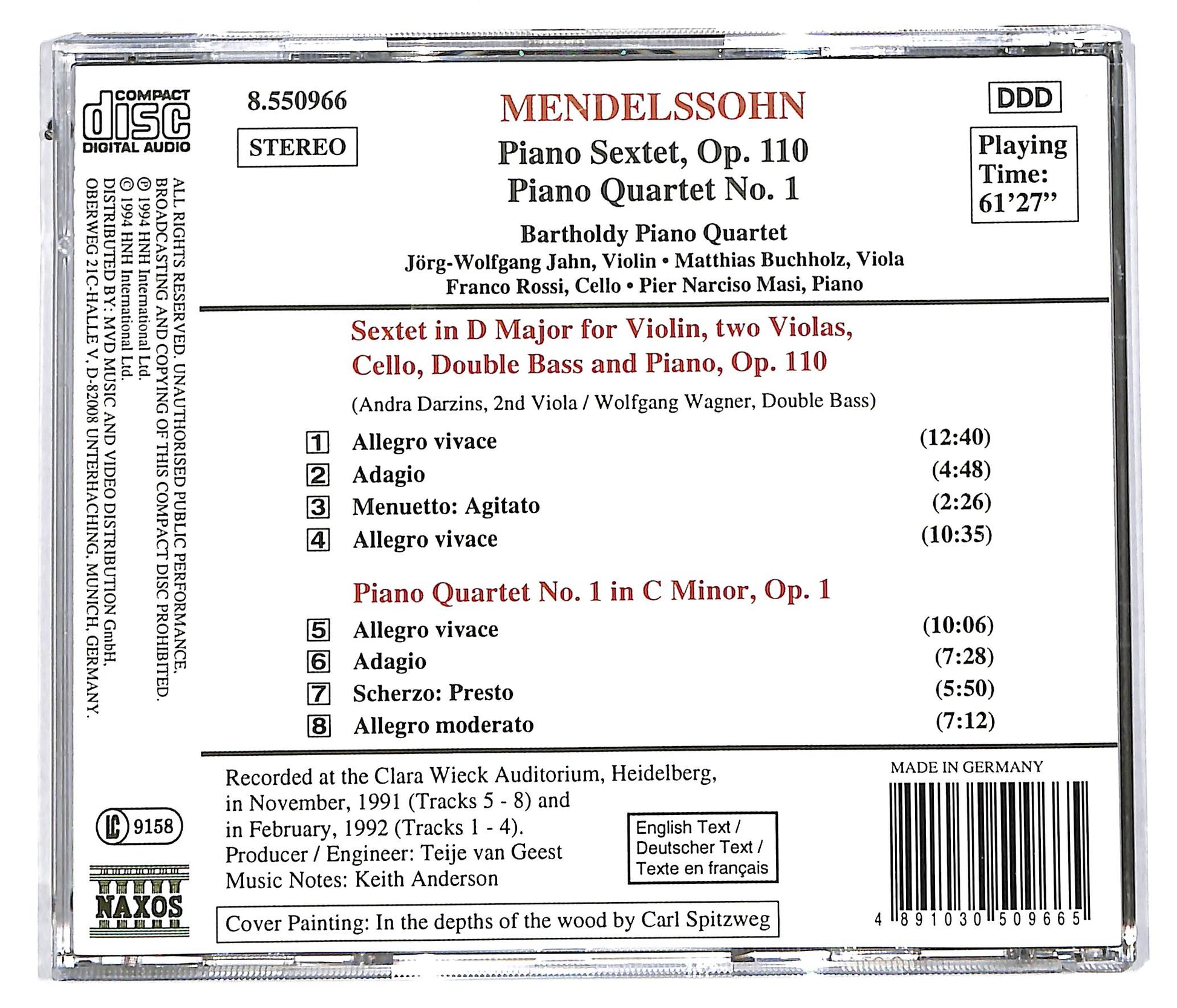 Mendelssohn - Bartholdy Piano Quartet - Piano Sextet, Op. 110 • Piano Quartet No. 1