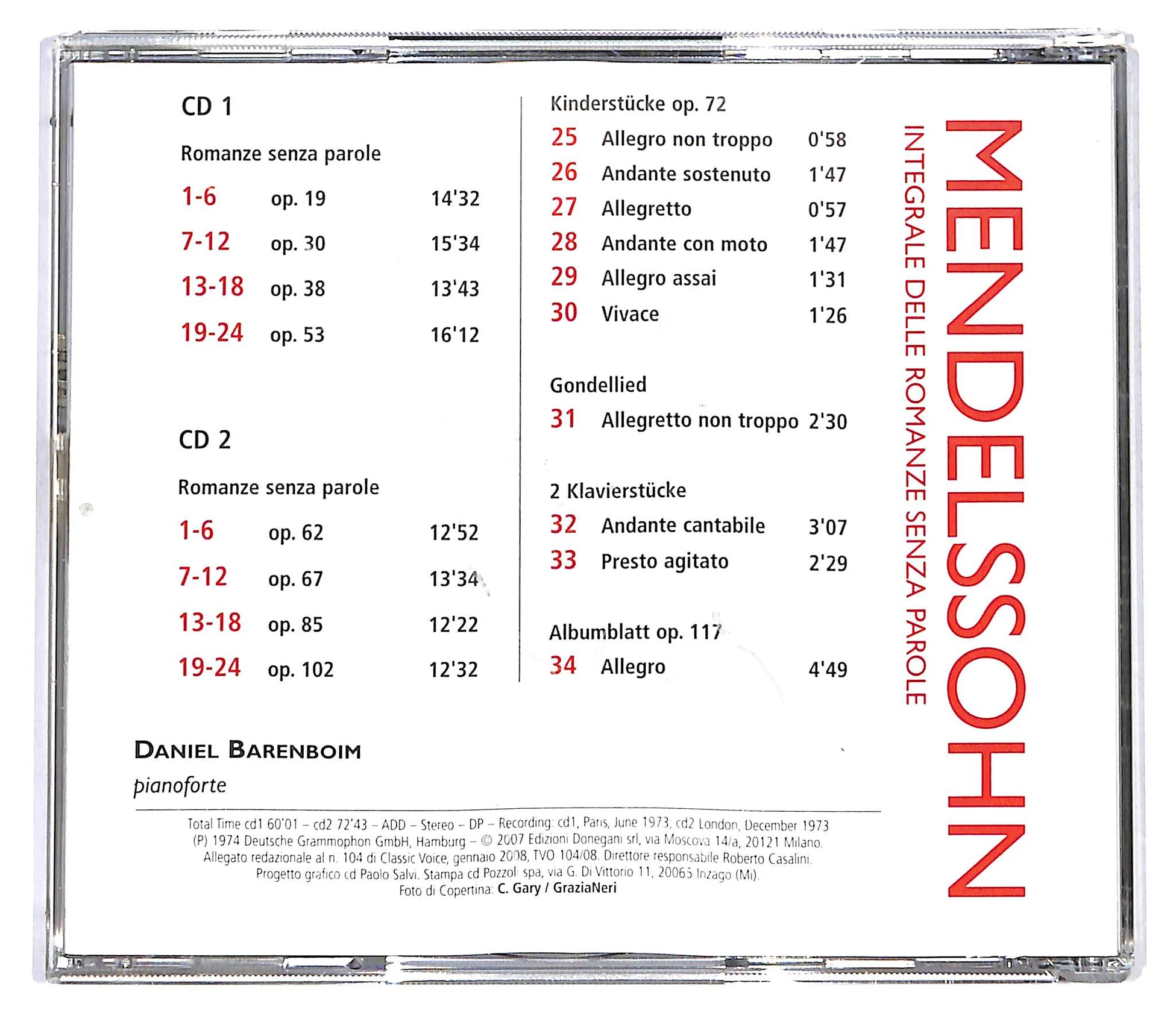 Felix Mendelssohn-Bartholdy , Daniel Barenboim - Integrale Delle Romanze Senza Parole