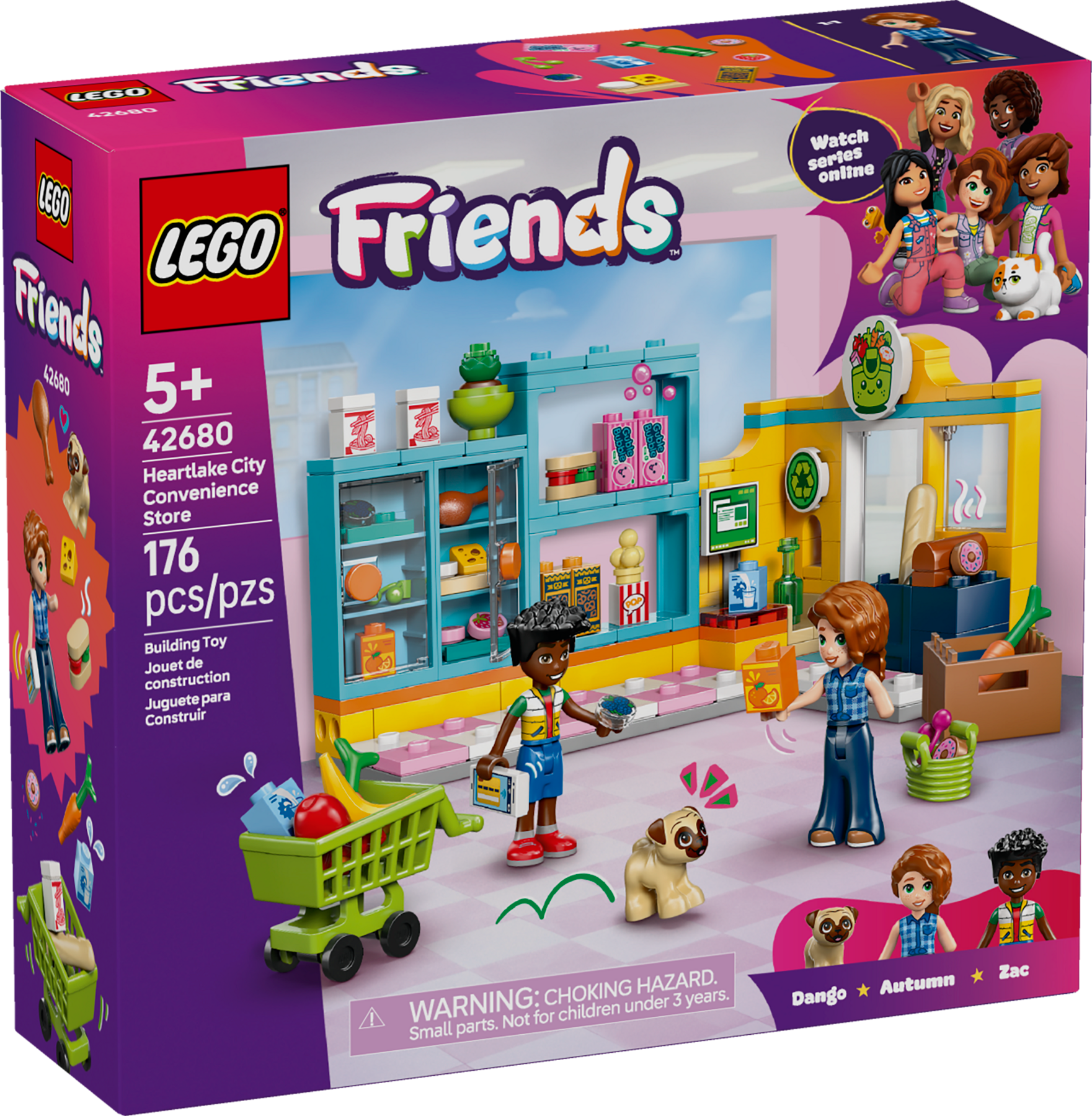 Ispira il gioco di finzione dello shopping con il playset Minimarket di Heartlake City (42680). I bambini e le bambine dai 5 anni in su possono inventare le loro storie divertenti con questo dettagliato set di negozio giocattolo per i bambini. Le caratteristiche realistiche includono scaffali, un carrello, un cestino, un punto per la raccolta differenziata e un registratore di cassa.Questo divertente giocattolo contiene le mini-doll di Autumn e Zac, un cane giocattolo e tantissimi alimenti che i clienti possono acquistare. Gli alimenti includono pane, ciambelle, succo di frutta, latte, scatole di noodle, gomma da masticare, un panino, una mela, una banana, fragole, ciliegie, carote, popcorn, una pianta e altro ancora.Questo set è un fantastico regalo per i bambini e le bambine che amano lo shopping. Con l'app LEGO® Builder, i bambini possono divertirsi con un'avventura di costruzione intuitiva, ingrandendo e ruotando i set grazie a istruzioni per la costruzione in 3D, salvare i set e seguire i propri progressi. Il set contiene 176 pezzi.