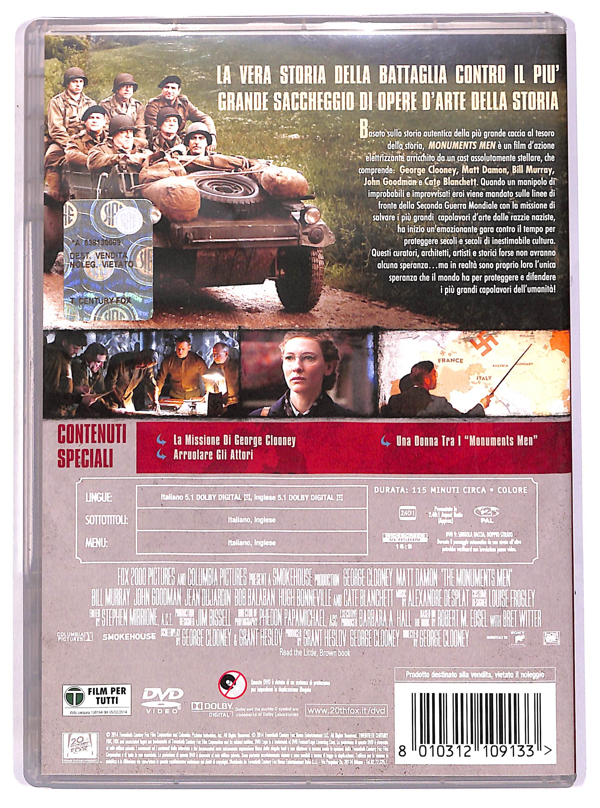 Potrebbe rivelarsi una missione impossibile: con le opere d'arte intrappolate dietro le linee nemiche e l'esercito tedesco incaricato di distruggere qualsiasi cosa in seguito alla caduta del Reich, come potranno sette direttori di musei, curatori e storici dell'arte - molto piu a loro agio con un Michelangelo che con un fucile in mano - portare a termine la missione? Nei panni dei Monuments Men, come vennero chiamati, in una lotta contro il tempo per impedire la distruzione di 1000 anni di cultura, questi uomini rischieranno le loro vite per proteggere e difendere le piu grandi conquiste del genere umano