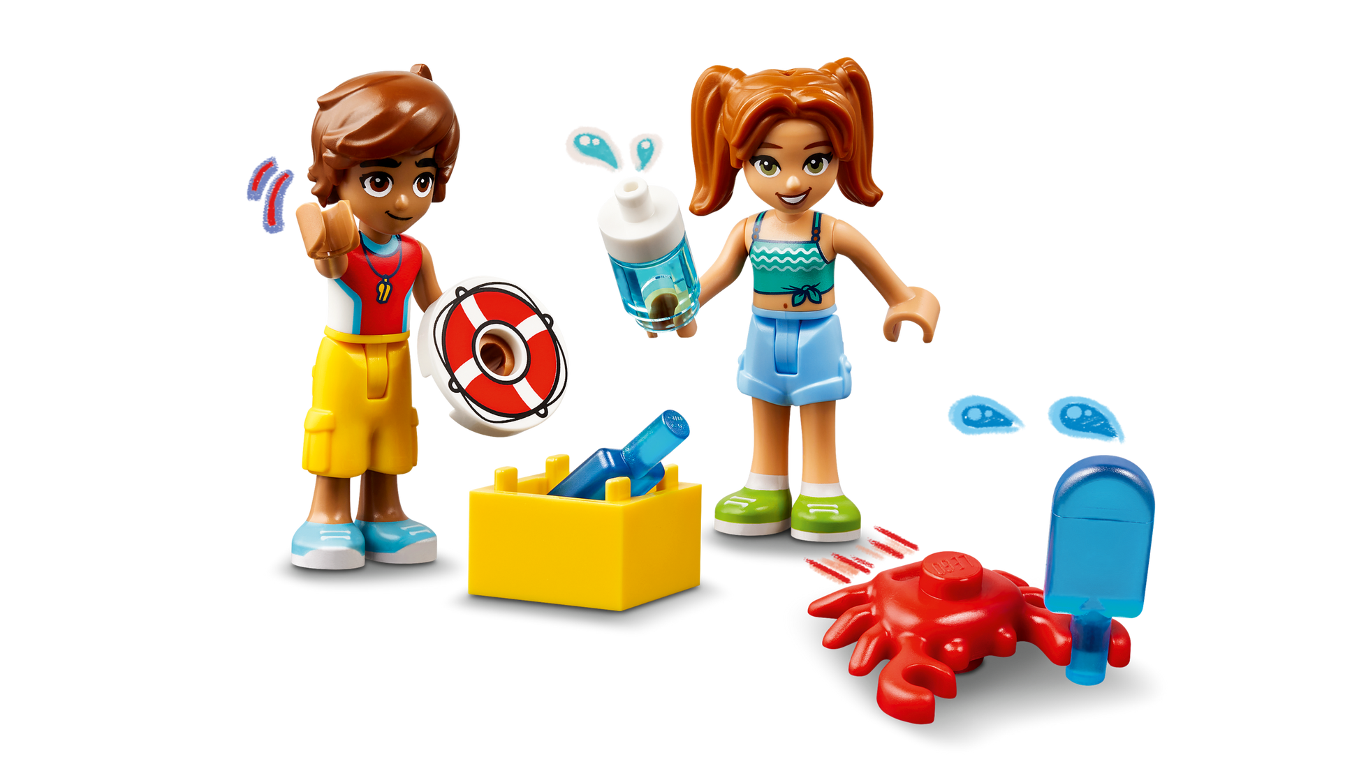 - Include 2 moto d'acqua giocattolo: questo set giocattolo con bagnino contiene i personaggi LEGO® Friends Leo e Candi, più 2 moto d'acqua, così i bambini potranno creare tante storie sulla spiaggia di Heartlake City per gli amici