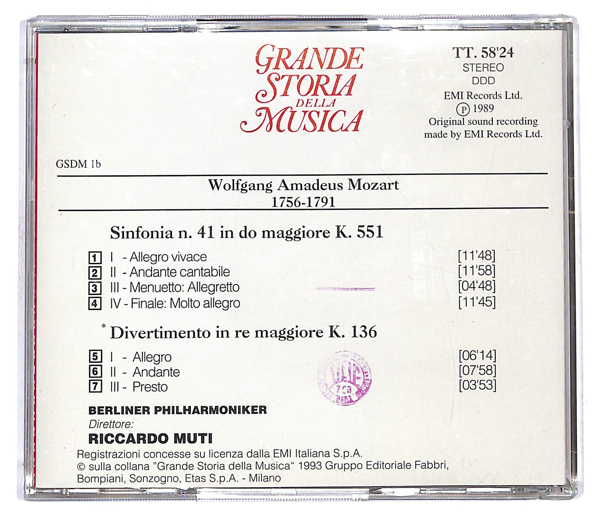 Mozart / Riccardo Muti , Berliner Philharmoniker - Sinfonia N. 41 K. 551 'Jupiter' - Divertimento K. 136