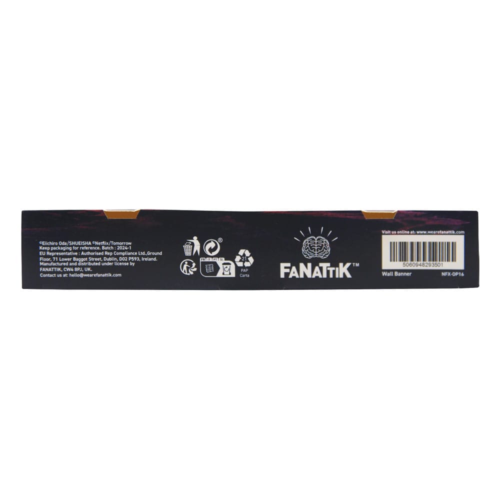 This officially licensed One Piece extra large wall banner measures 125 x 85cm and includes metal eyelets for easy hanging.