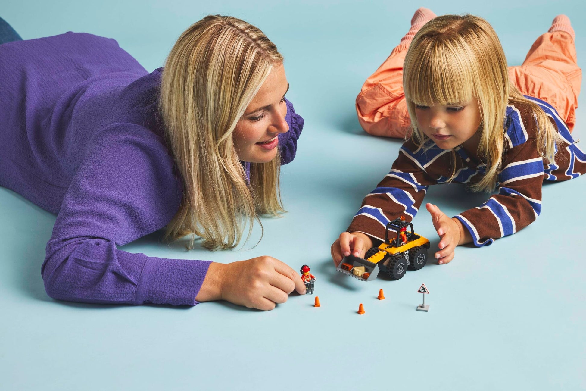 - Veicoli da cantiere giocattolo LEGO® per i bambini che amano giocare: i bambini possono posizionare il cartello, usare i coni per delimitare l'area di lavoro e usare la pala della macchina per sgomberare le macerie LEGO
