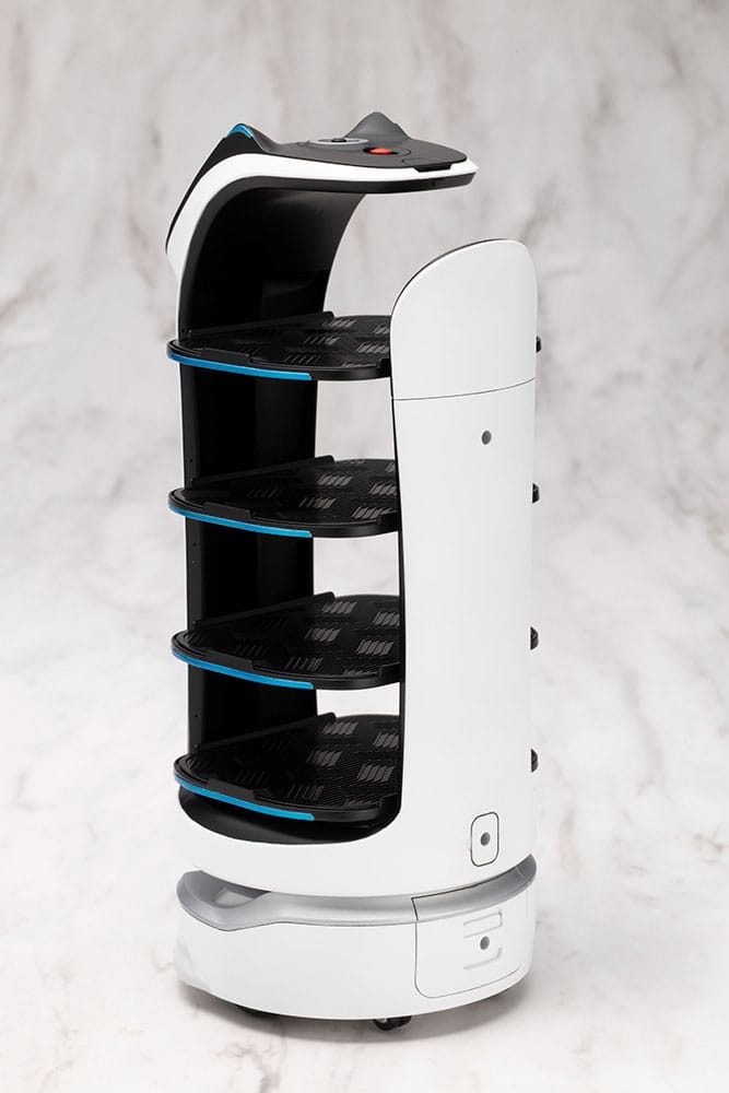 BellaBot, the latest delivery robot designed by Pudu, is endowed with superior human-robot interaction capabilities. Featuring an innovative bionic design, cute appearance, AI speech capability, multi-modal interaction, and many other new functions, BellaBot provides users with an unprecedented food delivery experience.