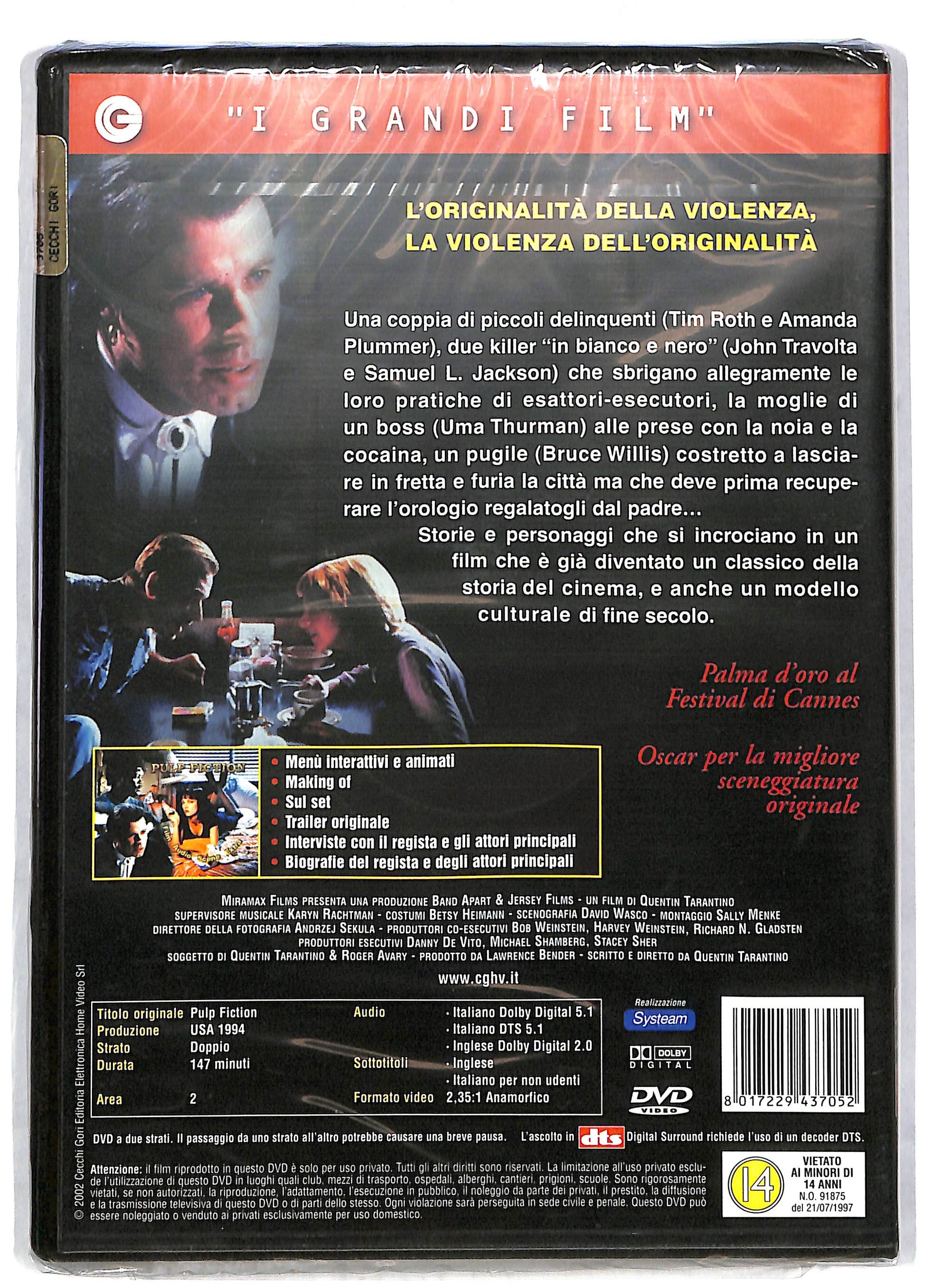 Attori: John Travolta, Samuel L. Jackson, Uma Thurman, Bruce Willis, Tim Roth, Amanda Plummer, Maria de Medeiros, Ving Rhames, Eric Stoltz, Rosanna Arquette, Bronagh Gallagher, Christopher Walken, Harvey Keitel, Quentin Tarantino, Frank Whaley, Phil LaMarr, Peter Greene, Duane Whitaker, Steve Buscemi, Angela Jones, Sy Sher