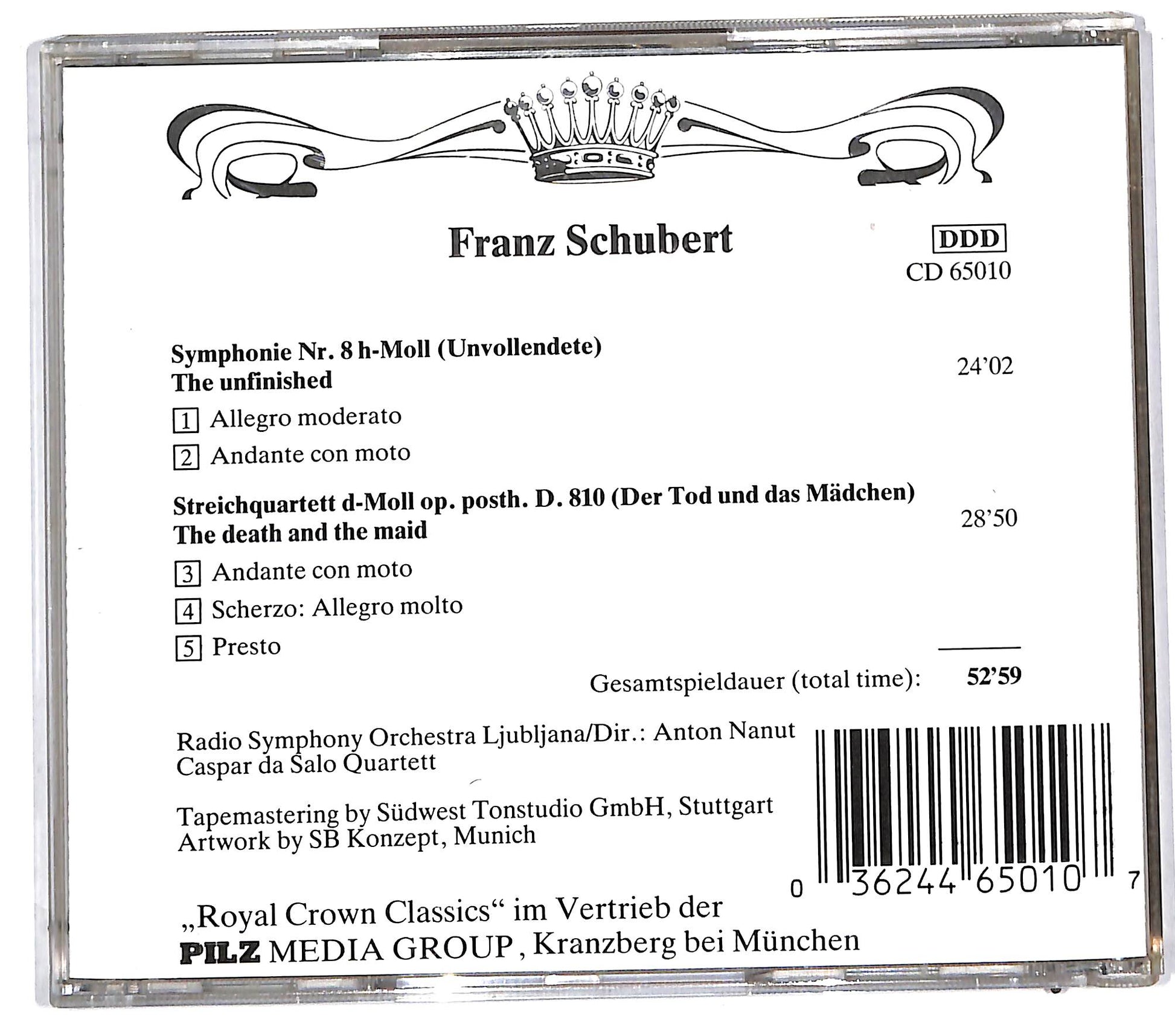 Radio Symphony Orchestra Ljubljana , Anton Nanut , Caspar da Salo Quartet - Royal Crown Classics, Franz Schubert - Die Unvollendete