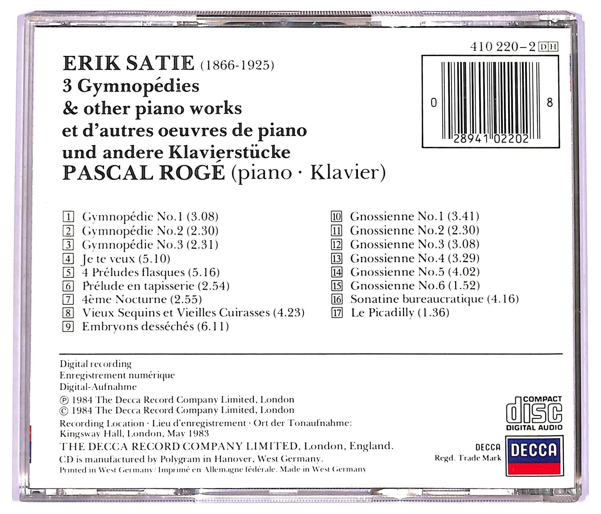 EBOND Satie Pascal Roge - 3 Gymnopedies & Other Piano Works CD CD073730