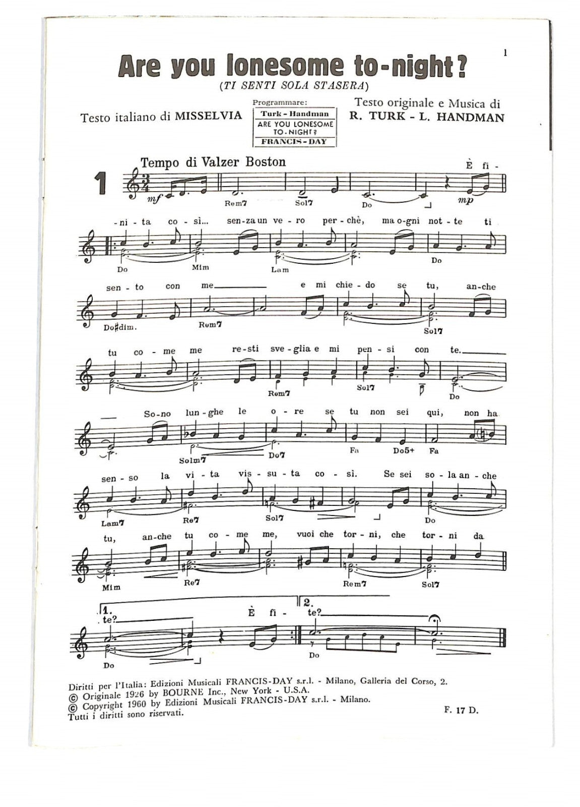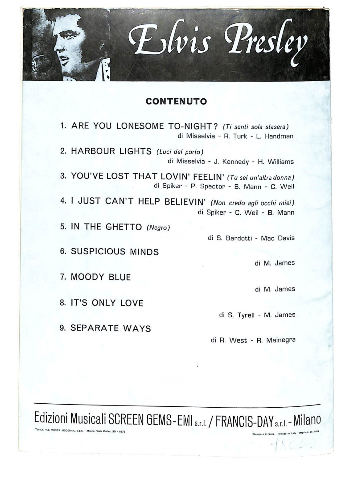 Editore: Edizioni Musicali SCREEN GEMS-EMI s.r.l