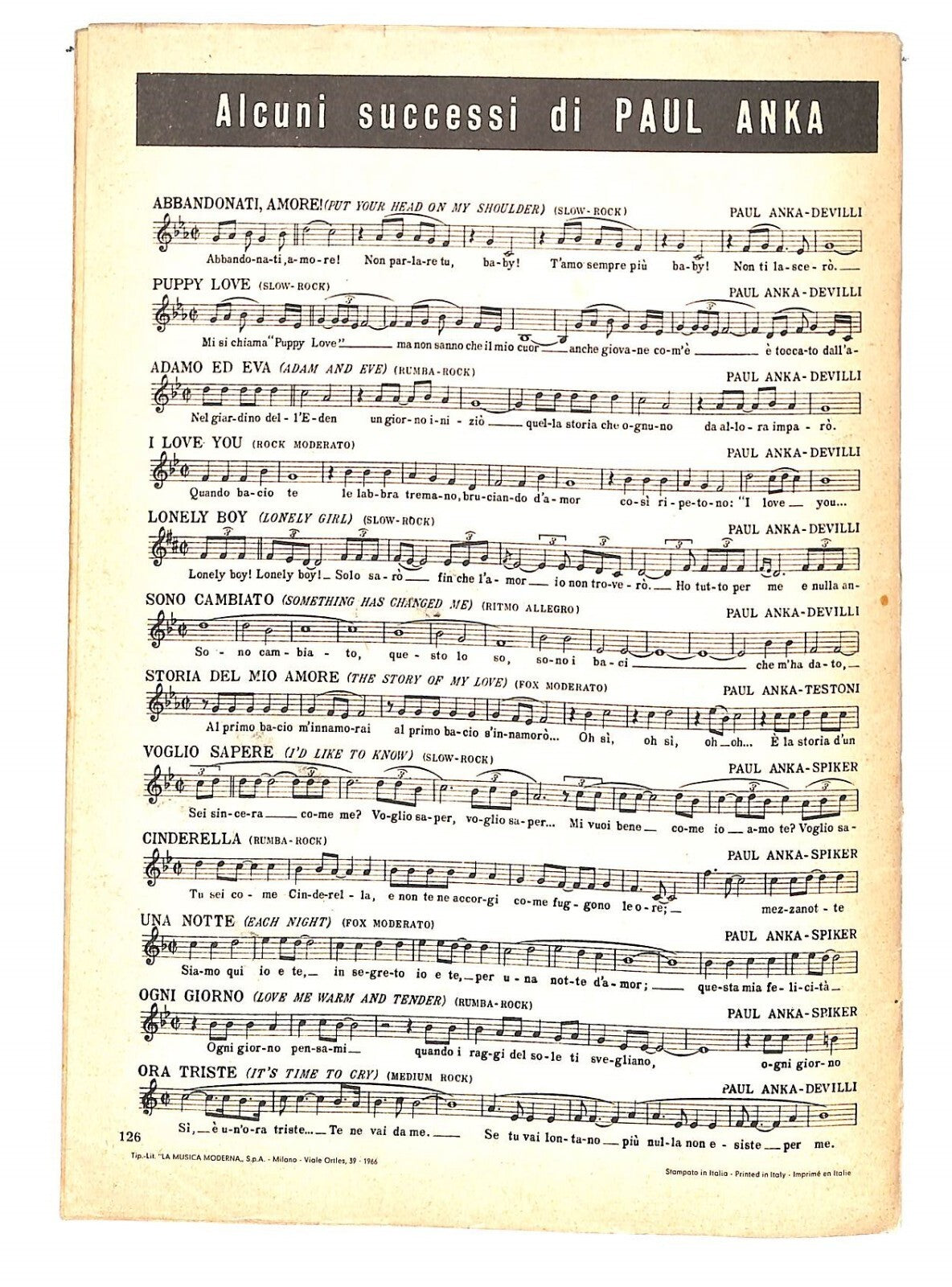 EBOND Spartiti Paul Anka il piacere di vederti - chi piu di me