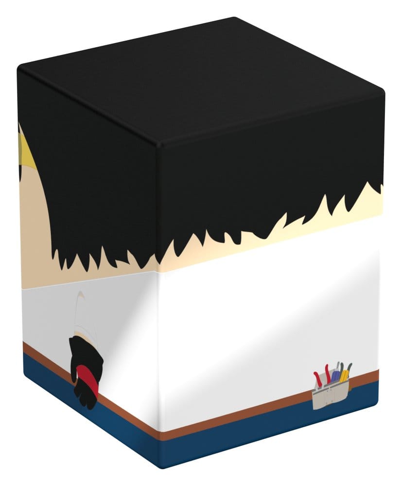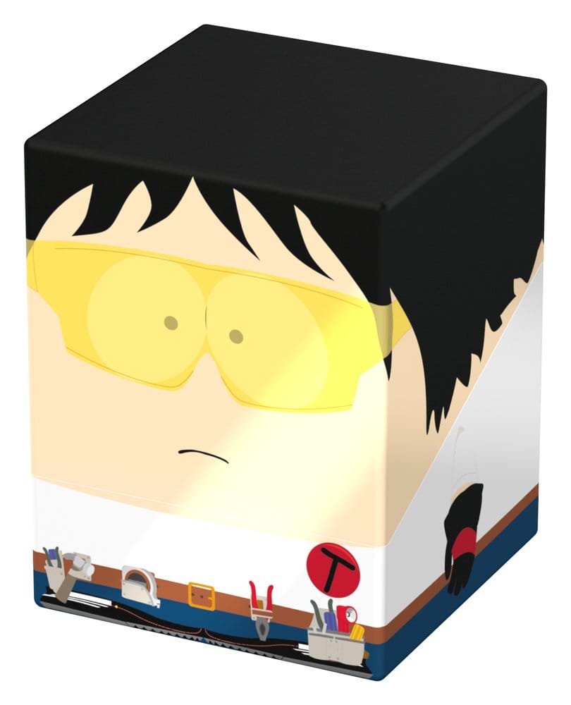 Collectible box for storing TCG decks, tabletop gaming accessories, and/or collectibles. The Toolshed Squaroe from the South ParkT edition holds up to 100 cards in double protective sleeves if used as a deck box. Squaroes are made from 78% renewable resources and fit perfectly into the separately available Collectors Case.