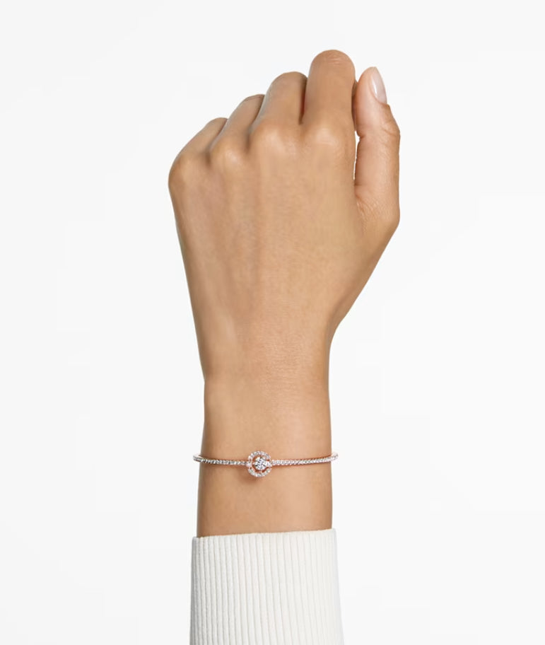 Swarovski 5497483 Bracciale rigido Sparkling Dance Taglio tondo Bianco Placcato Oro Rosa