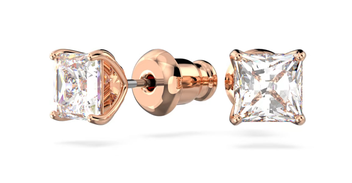 Swarovski 5509935 Orecchini a lobo Attract Taglio squadrato Piccoli Bianchi Placcato Oro Rosa