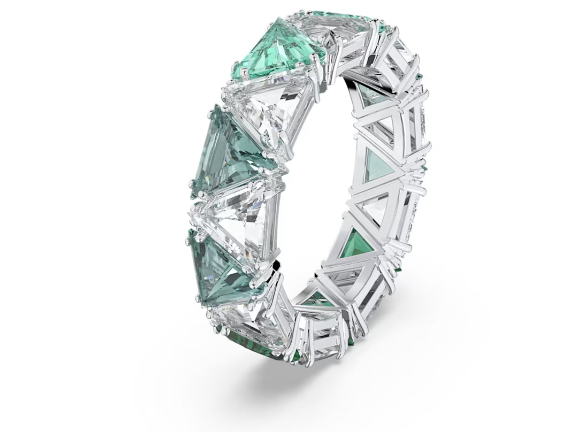 Swarovski 5610734 Anello cocktail Ortyx Taglio triangolo Verde Placcato Rodio Taglia50