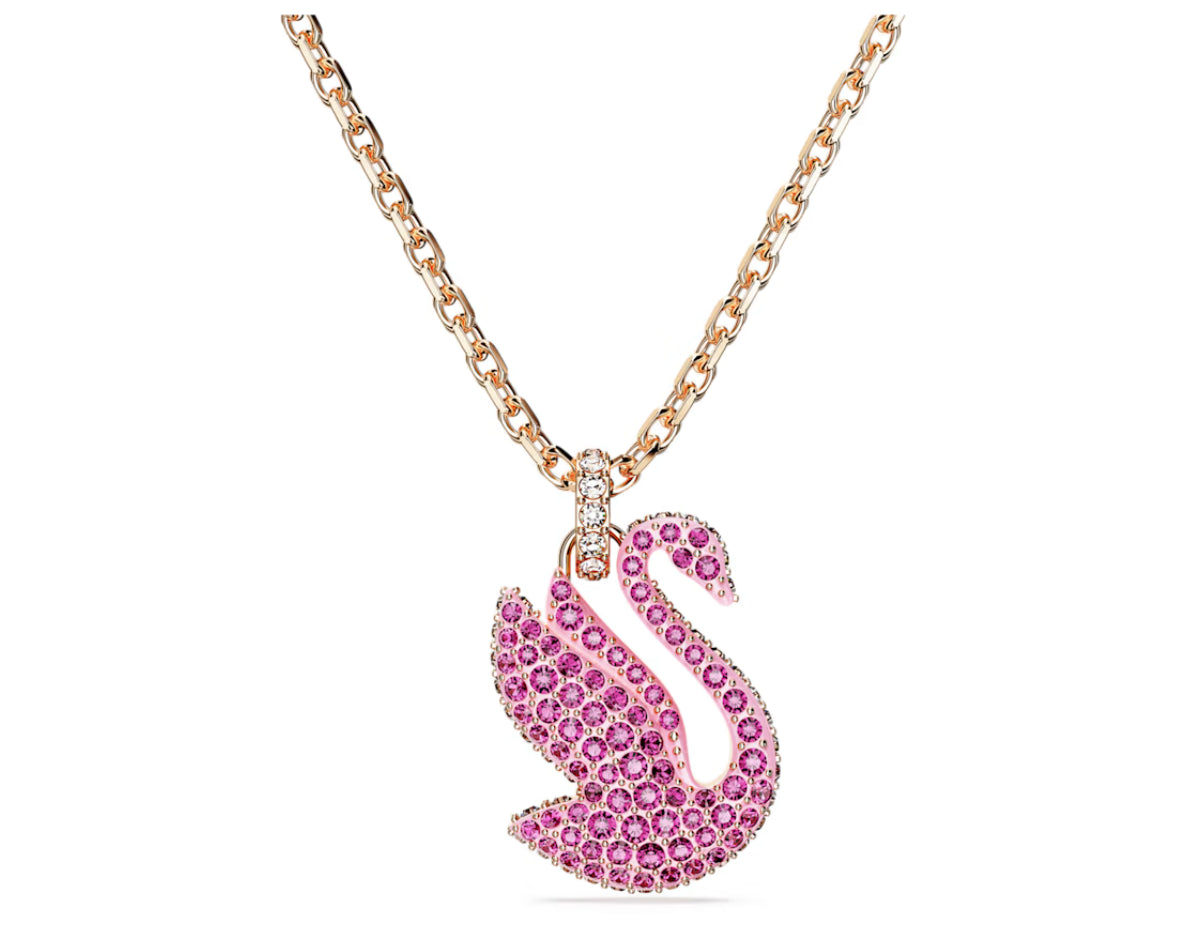Swarovski 5647552 Pendente Iconic Swan Cigno Medio Rosa Placcato Oro Rosa